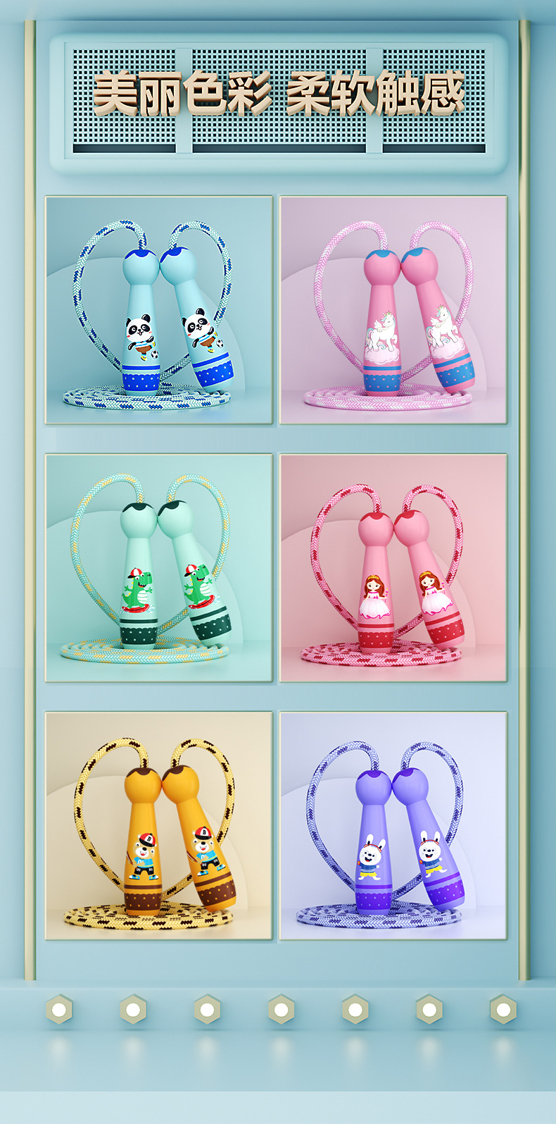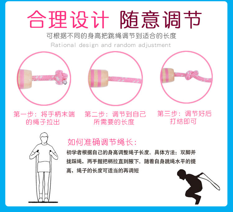 어린이 로프 건너 뛰기 초등학교 학생 유치원 성인 초보자 운동 피트니스 조정 가능한 나무 손잡이 만화 로프 건너 뛰기 장난감스토어 가기