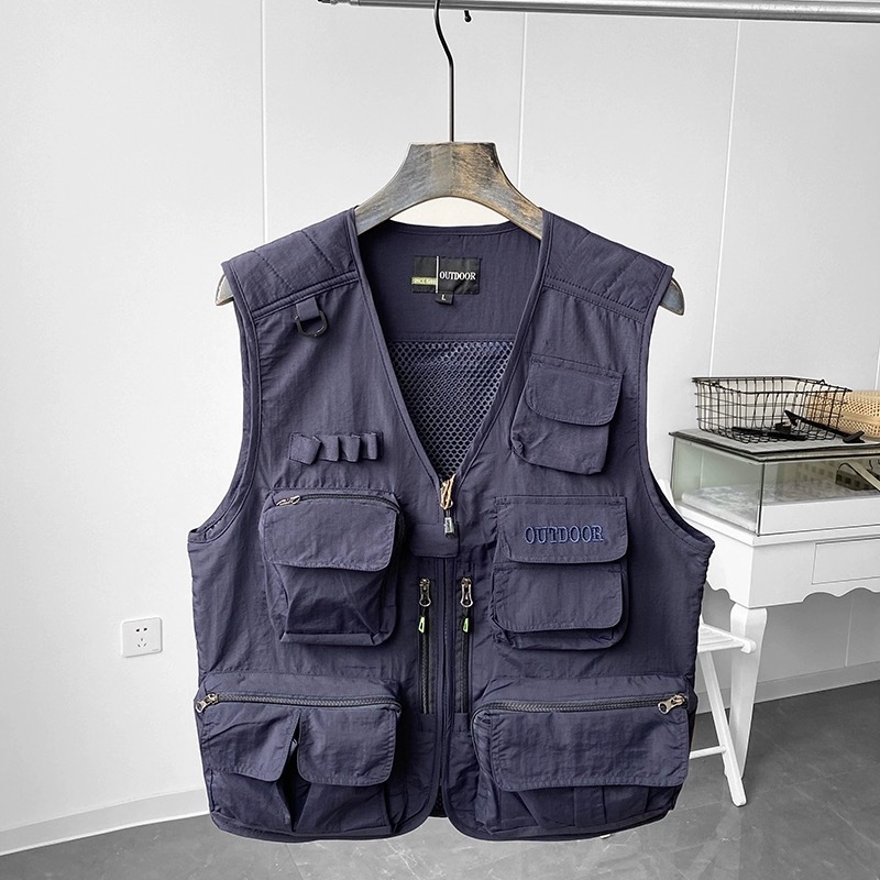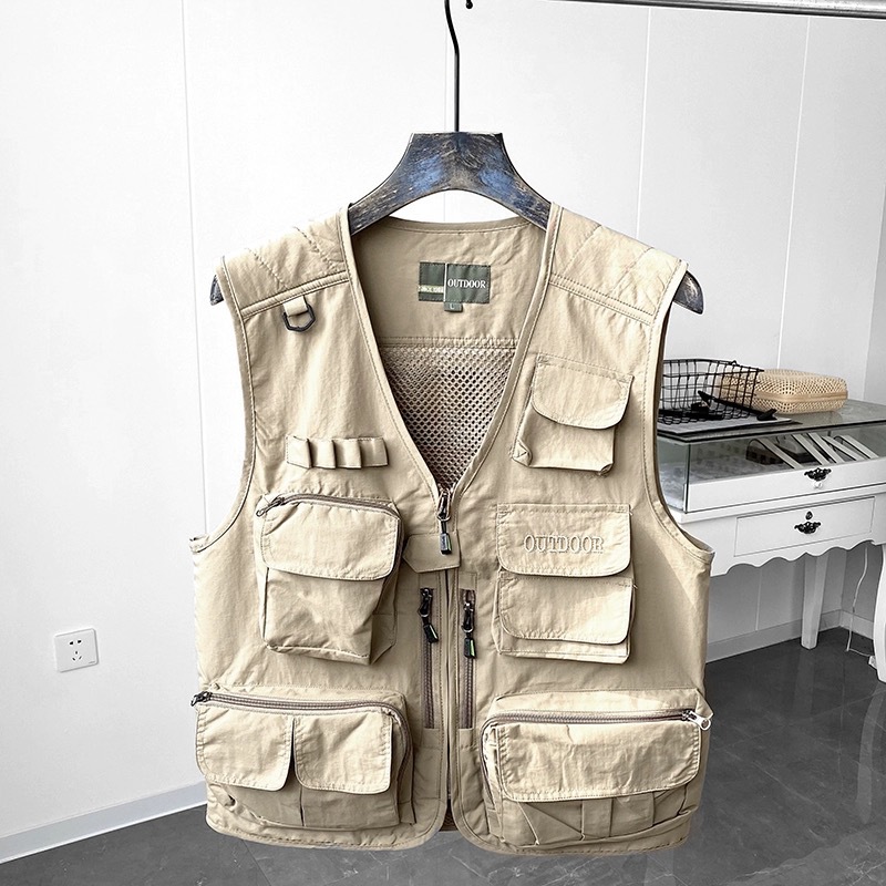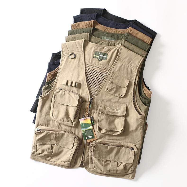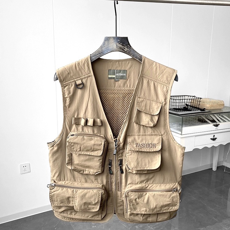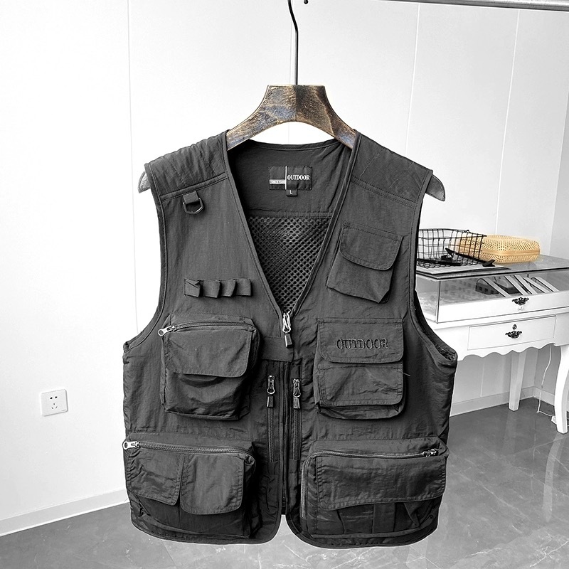 야외 활동, 낚시, 사진 촬영, 등산에 적합한 남성용 다용도 포켓 작업 조끼, 기능성 메쉬 소재로 빠르게 건조되고 통기성이 뛰어난 봄 여름 유행 제품