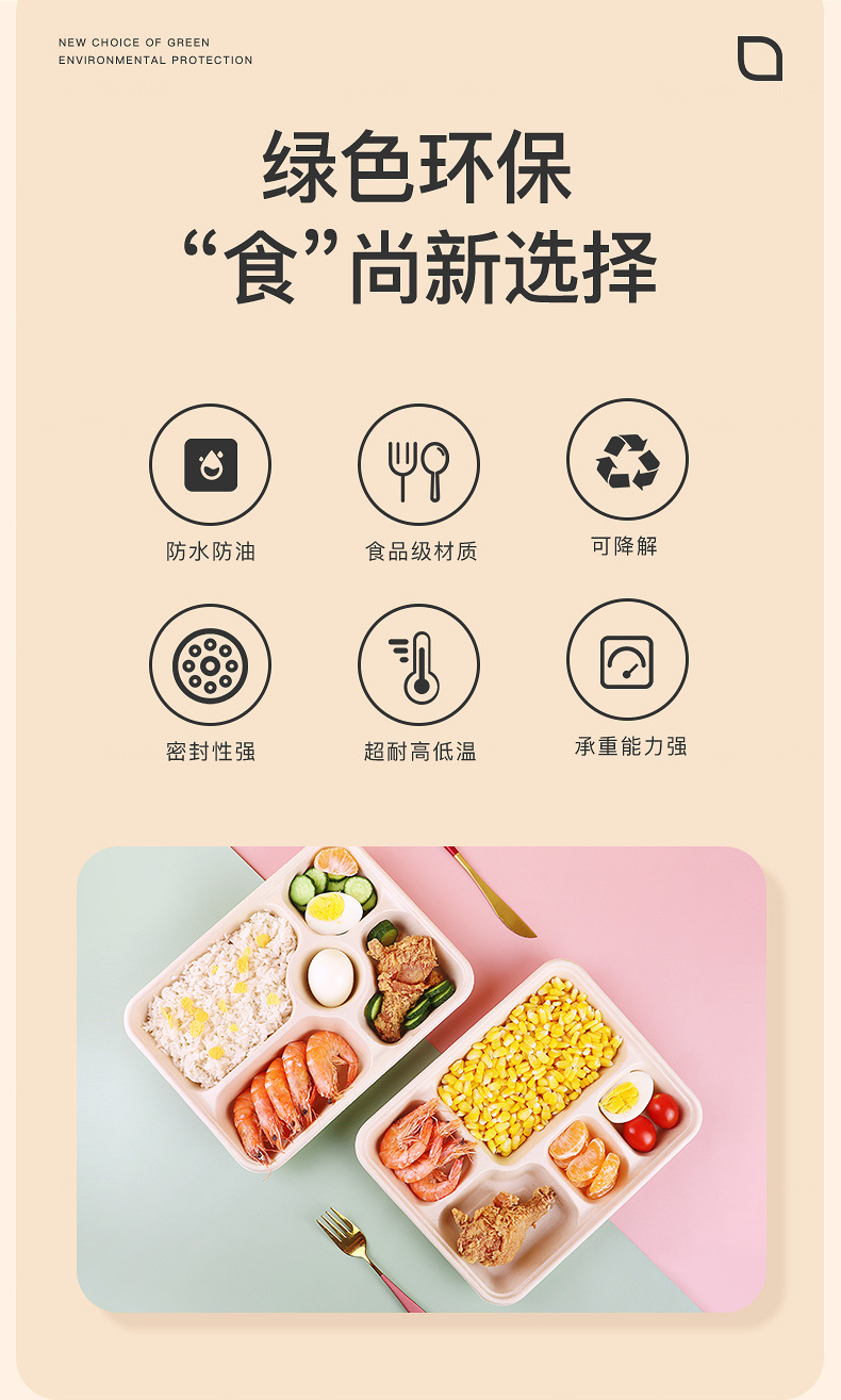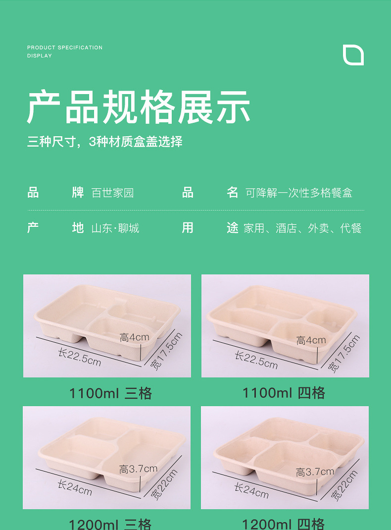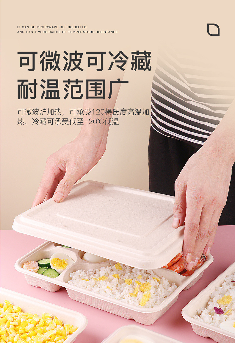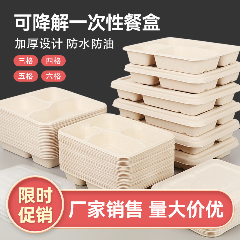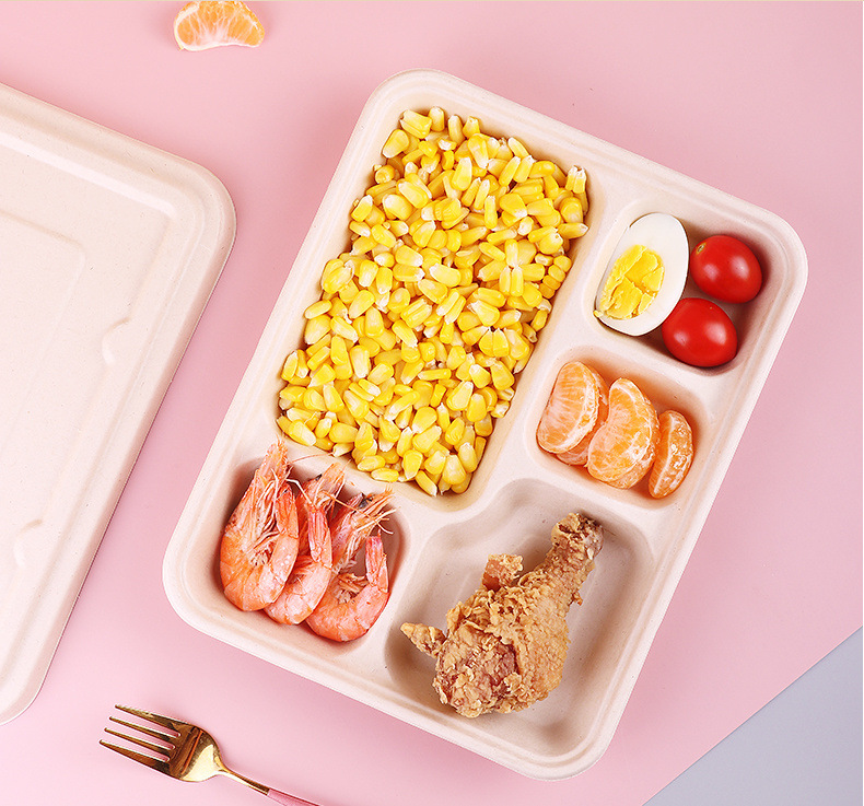 일회용 펄프 식사 상자 식품 등급 다중 구획 분해 가능한 식사 상자 3 칸 4 칸 5 칸 전자레인지 난방 상자스토어 가기