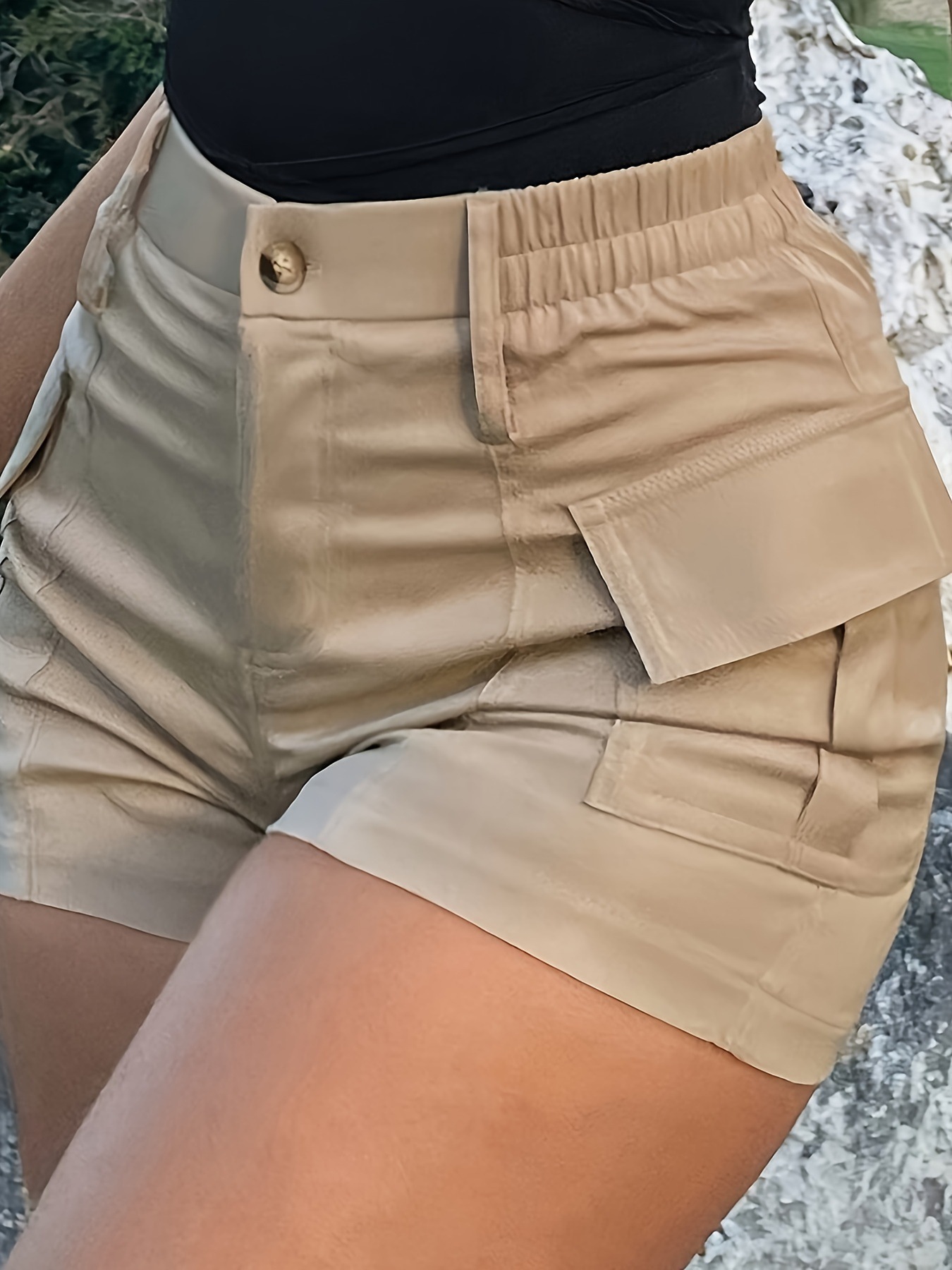 2025 유럽과 미국의 대외 무역 국경 간 새로운 ebay 캐주얼 여성용 하이 웨이스트 버튼 스트리트 포켓 카고 반바지 여성용