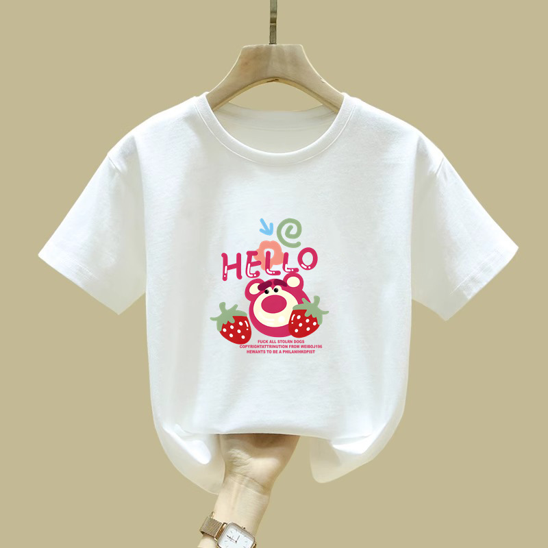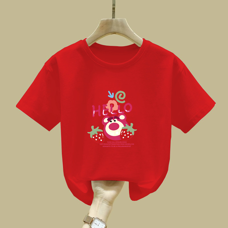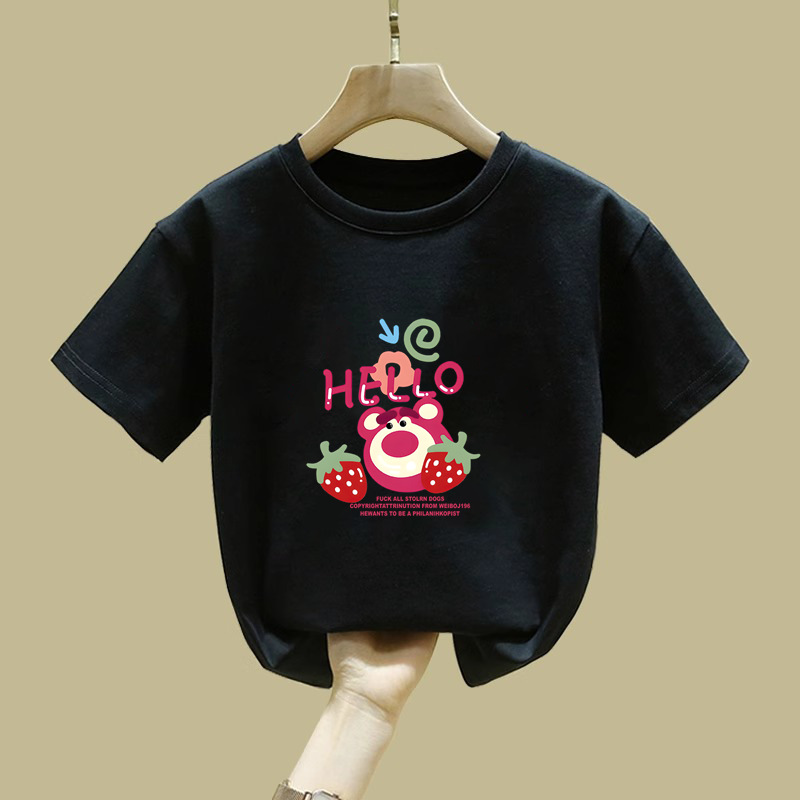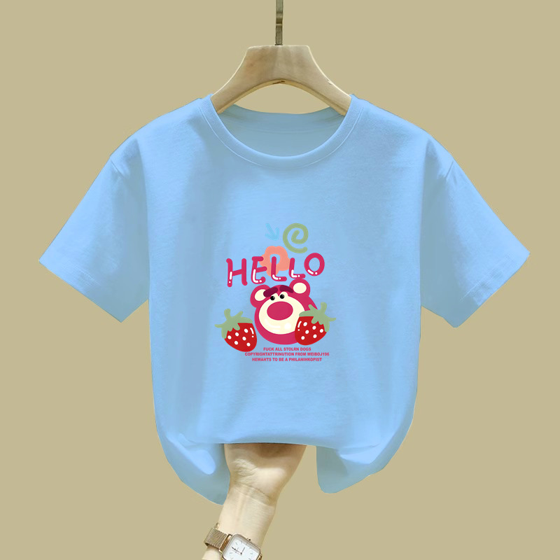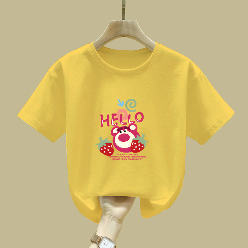 2115 # 소년과 소녀 반소매 코튼 웨스턴 스타일 어린이 캐주얼 티셔츠 여름 느슨한 만화 반소매 최고 트렌디스토어 가기