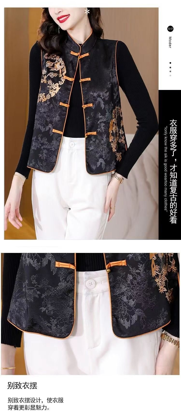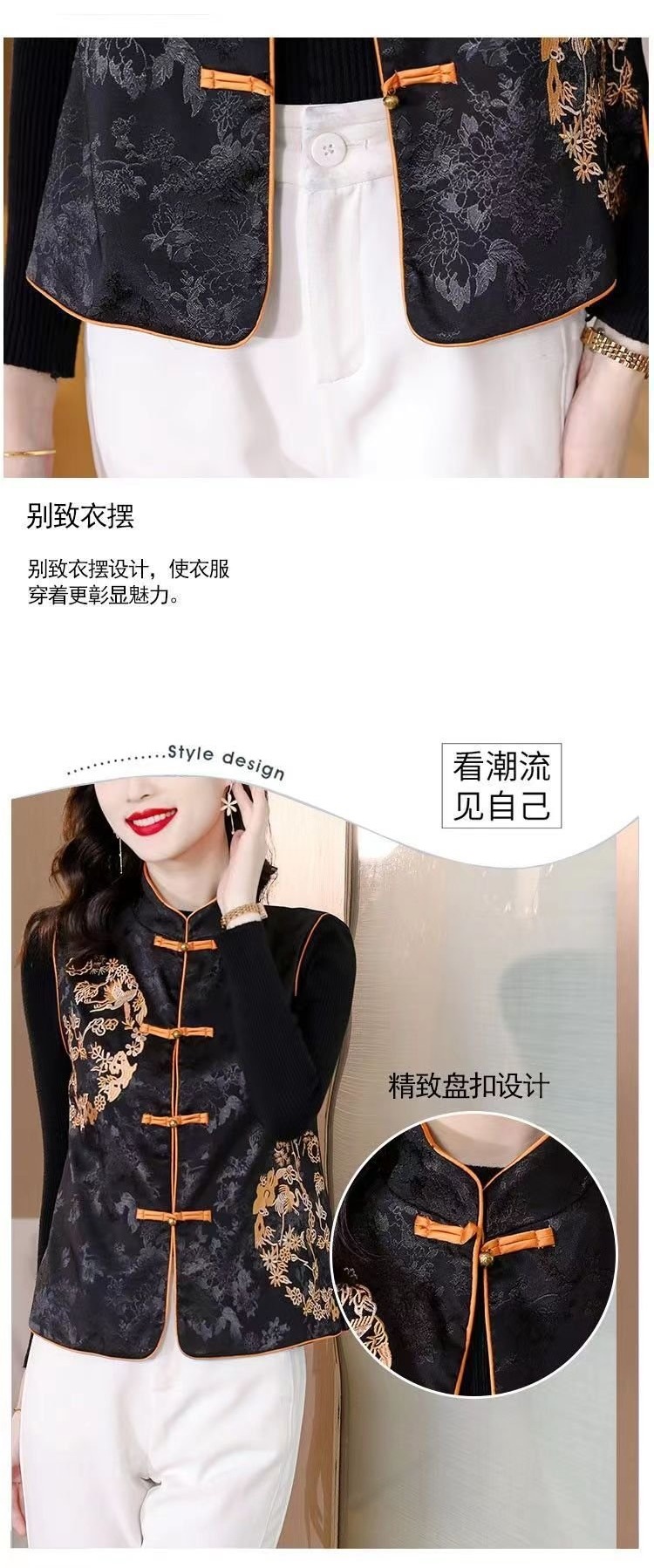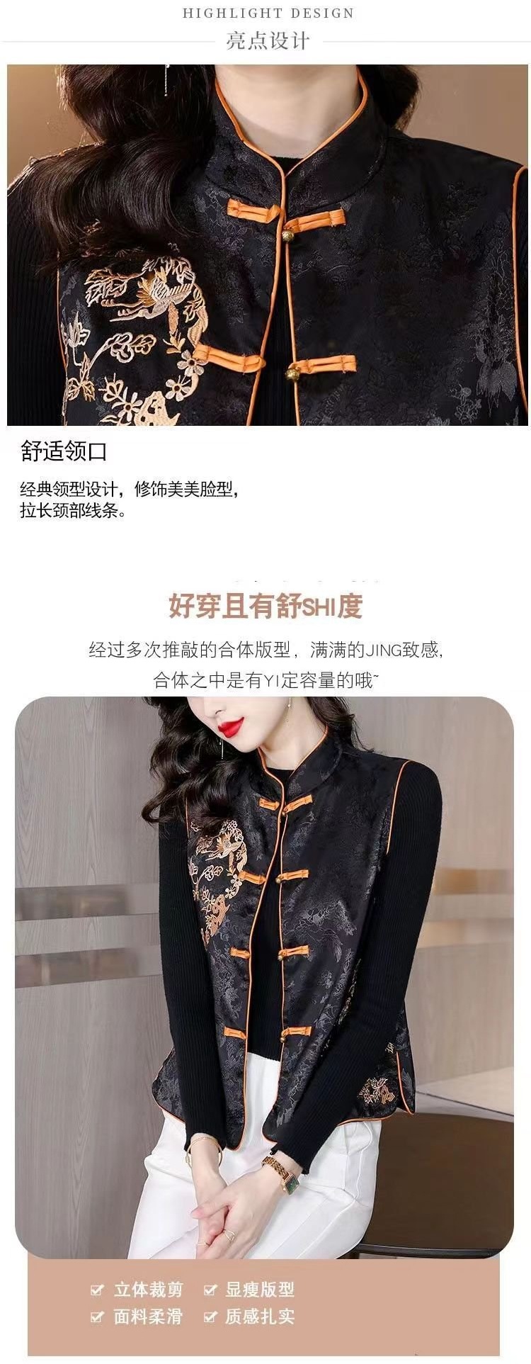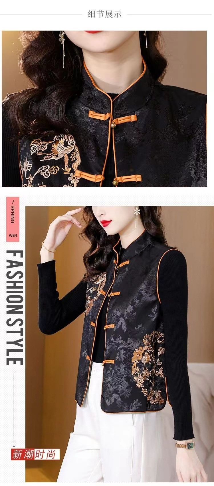 새로운 중국 스타일 국가 스타일 조끼 여성 2025 봄 새로운 어머니 서양 스타일 유행 자수 조끼 어깨 탕 탑스토어 가기