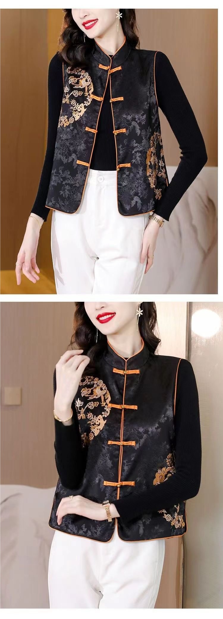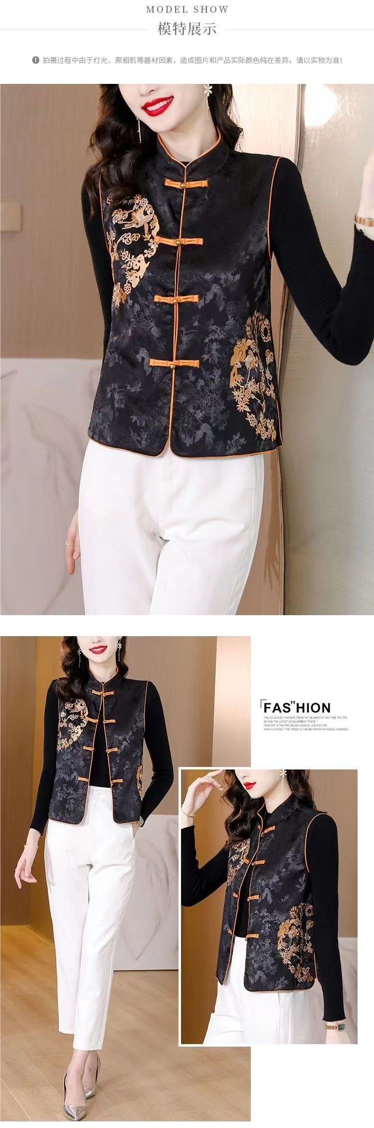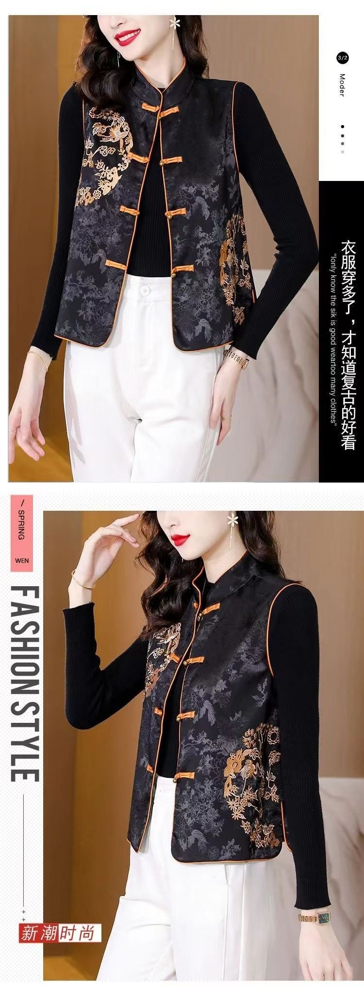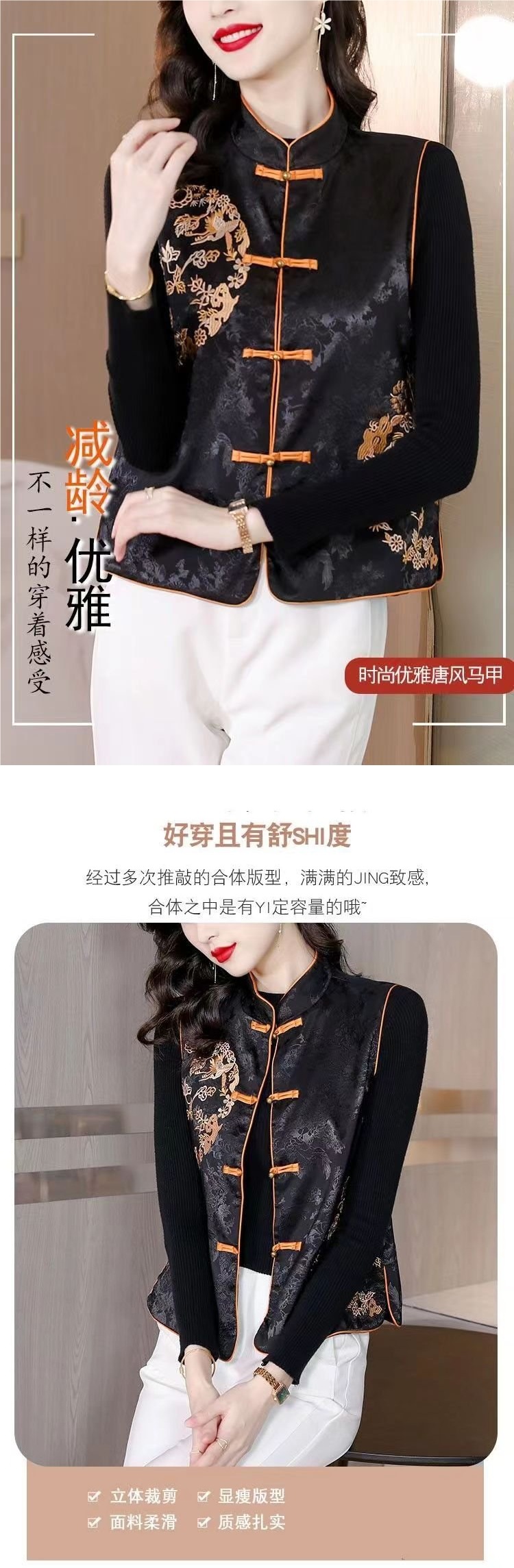 새로운 중국 스타일 국가 스타일 조끼 여성 2025 봄 새로운 어머니 서양 스타일 유행 자수 조끼 어깨 탕 탑스토어 가기