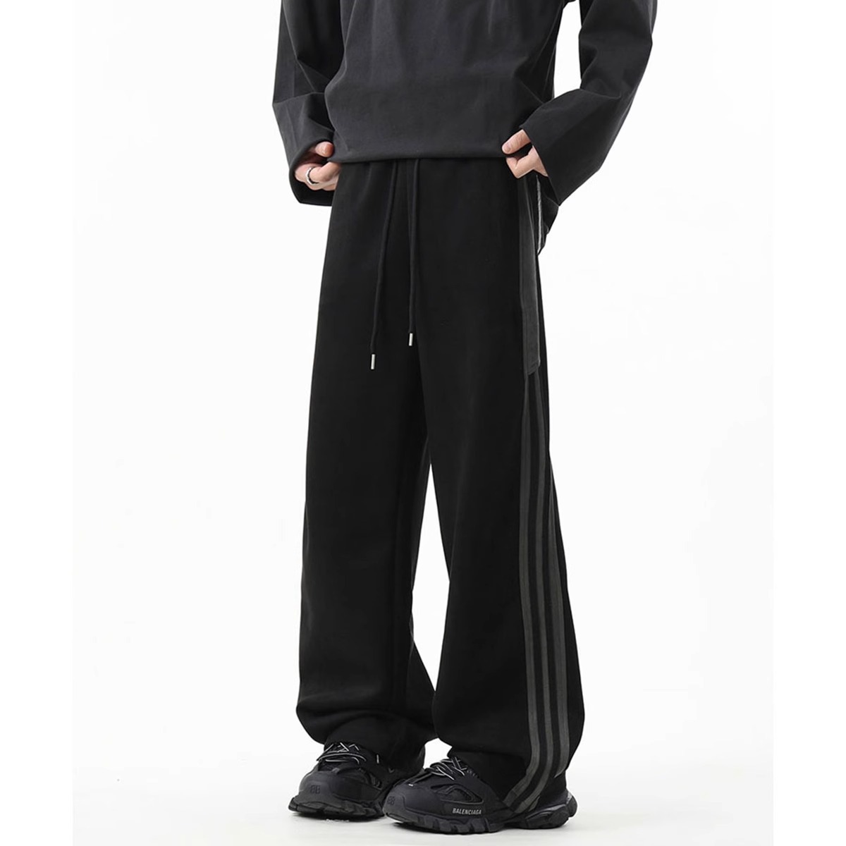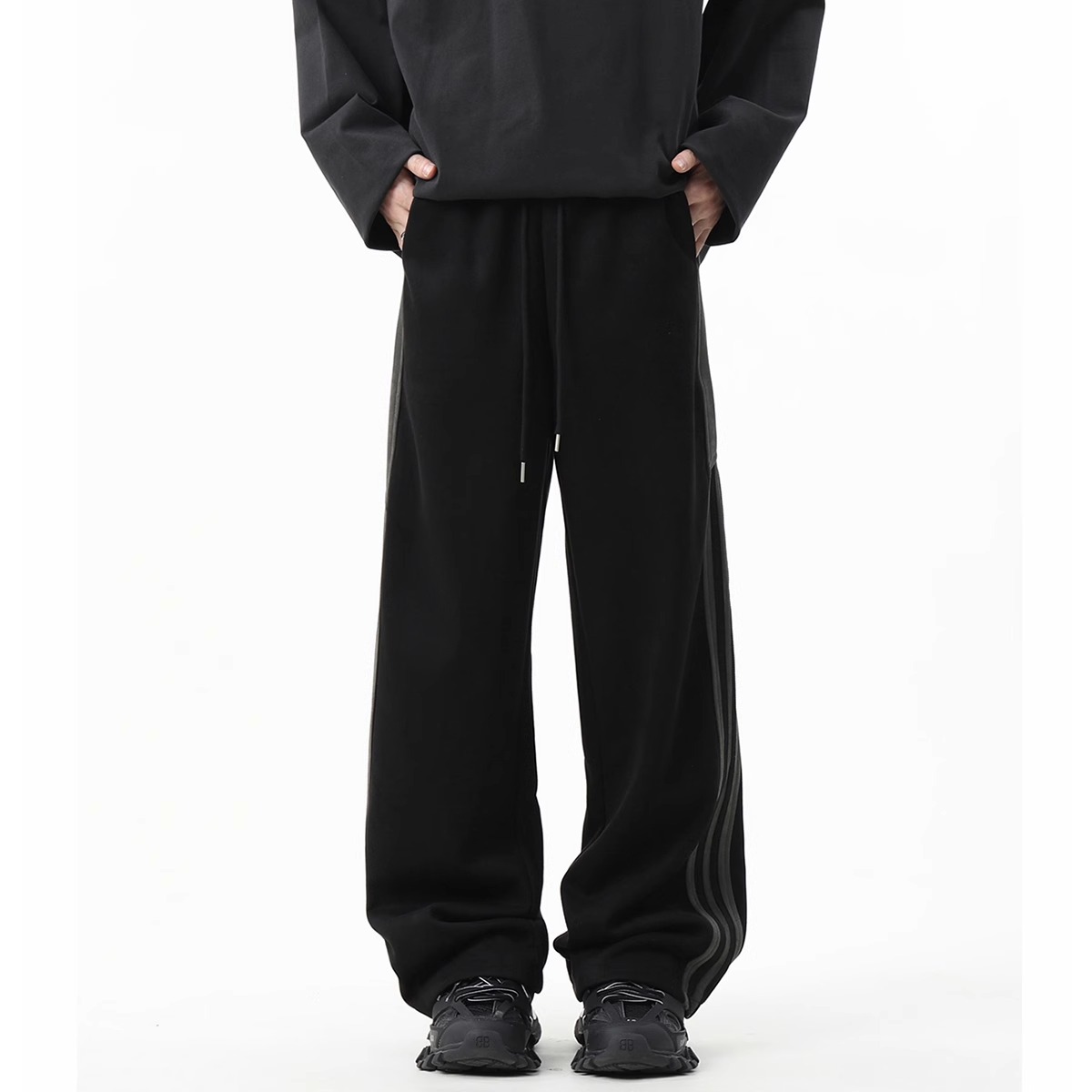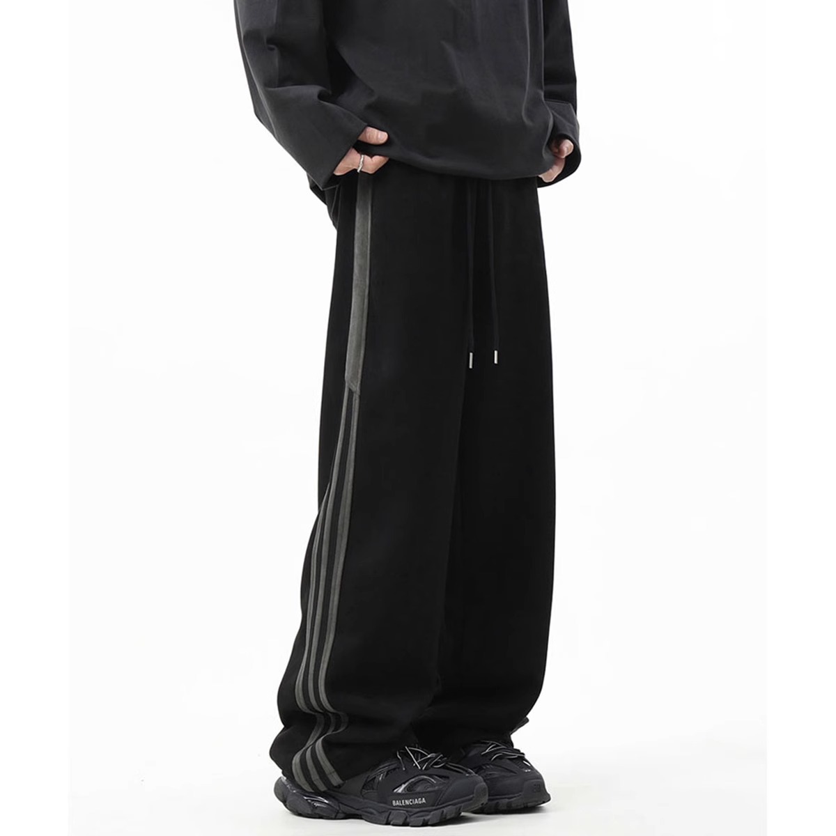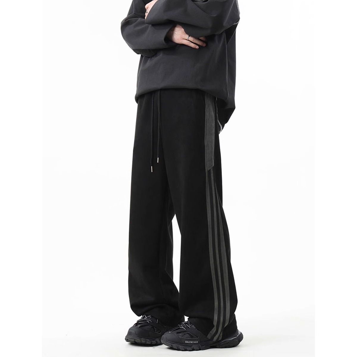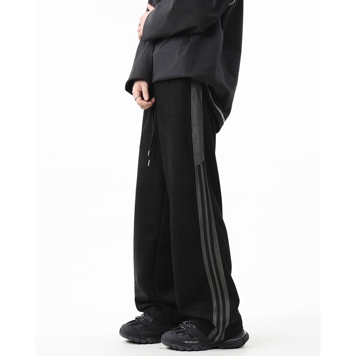 • 블랙 [고급 스웨이드 스트라이프 스웨트팬츠]