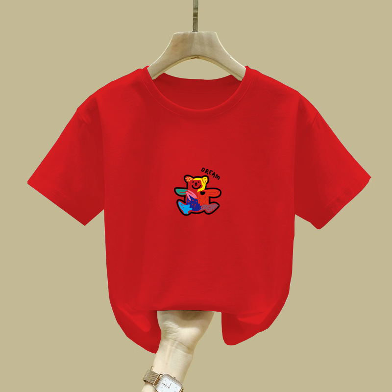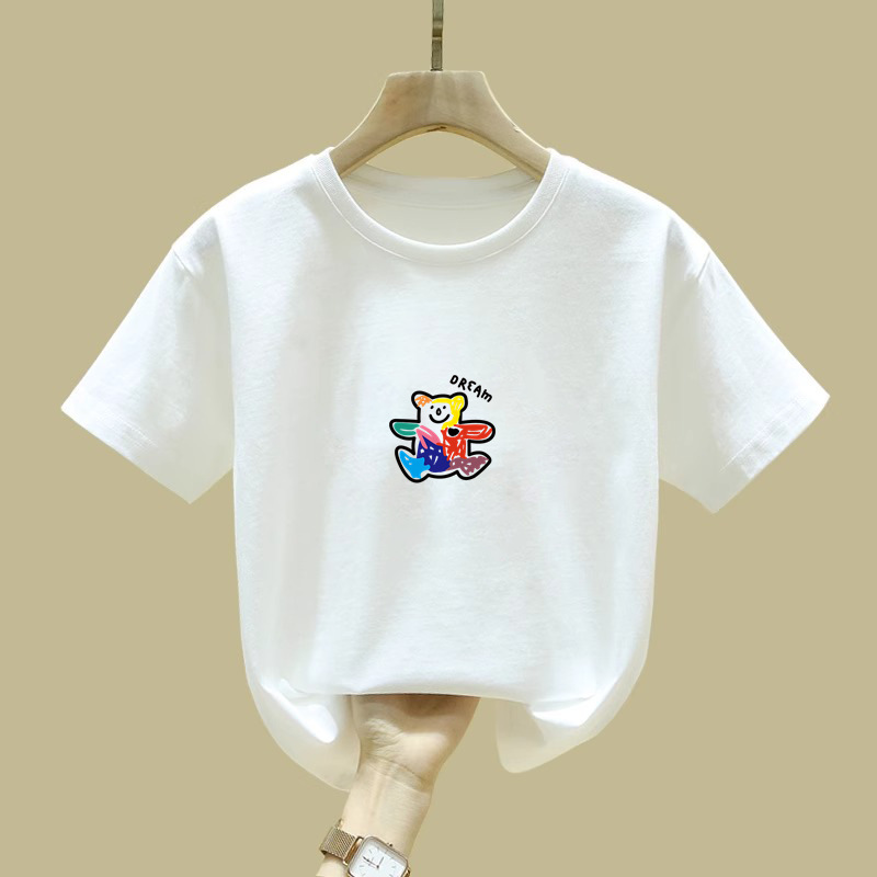 2113 # 남학생 반팔 티셔츠 여름 2025 새로운 어린이 학생 패셔너블 루즈 여름 올매치 걸스 퓨어 코튼 패션
