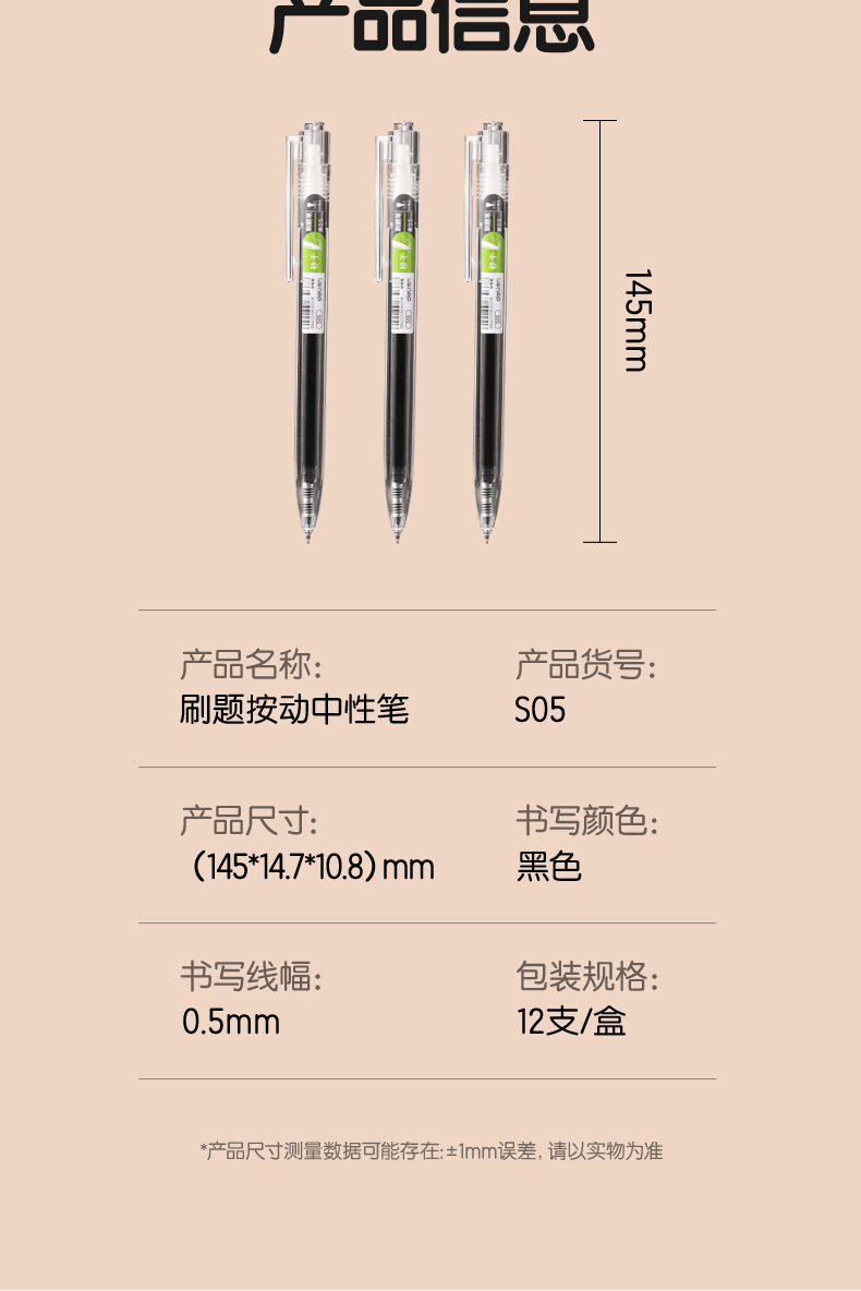 델리 S05 초 드라이 브러시 프레스 젤 펜 0.5mmST 헤드 낙하 방지 프레스 테스트 간단한 빠른 건조 브러시 펜스토어 가기