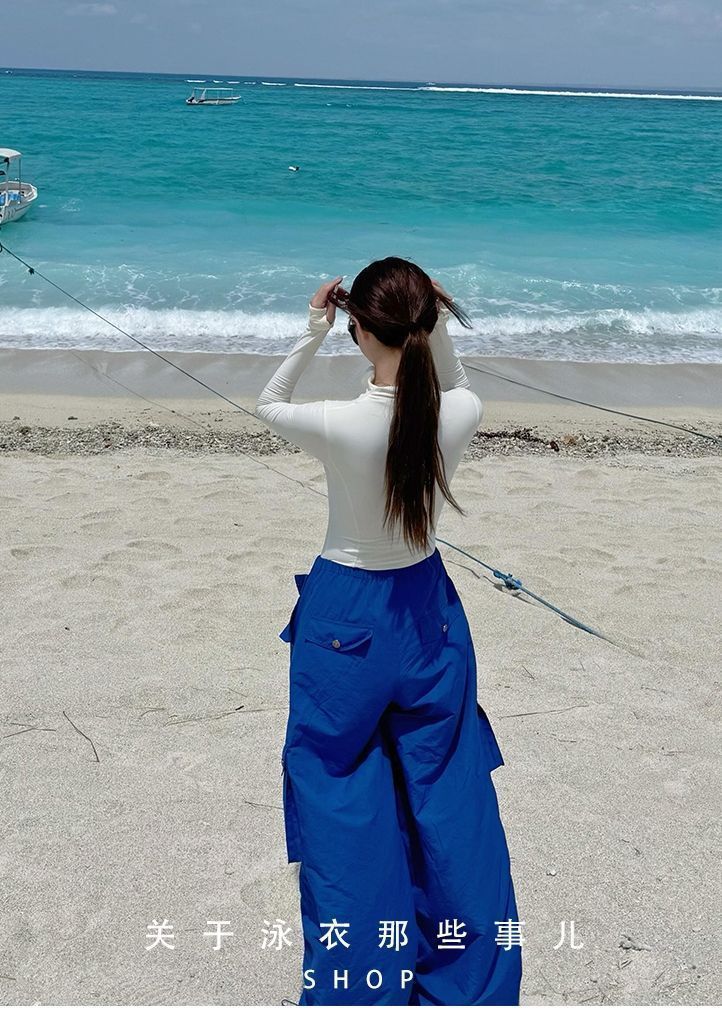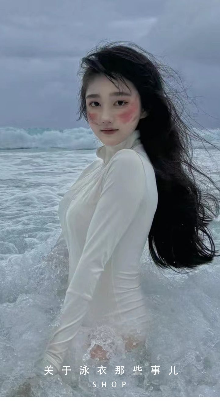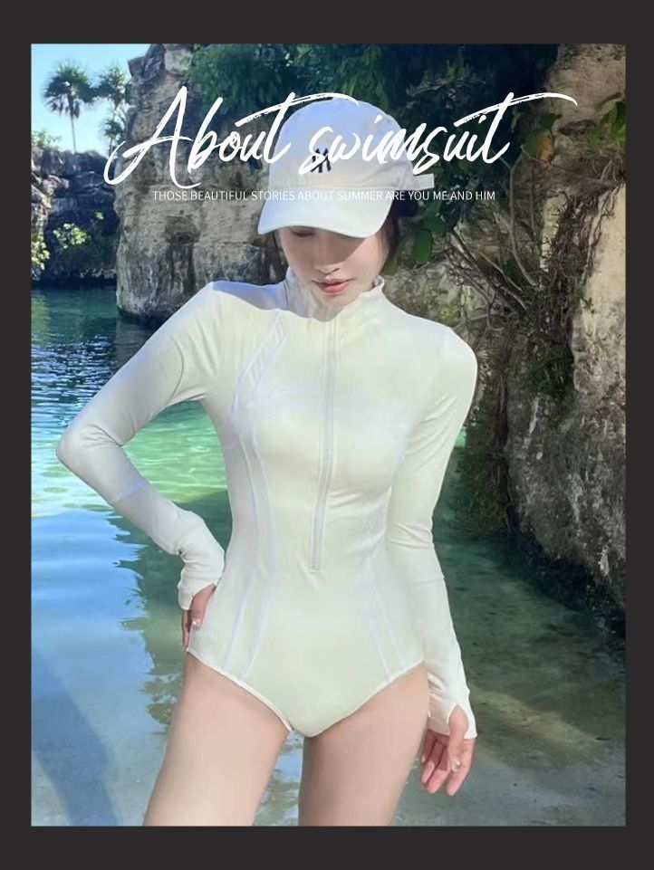 화이트 하이 칼라 아름다운 원피스 긴 소매 선 스크린 테일 웨이브 서핑 보수적 인 다이빙 세트 휴일 온천 그물 빨간 수영복 여성스토어 가기