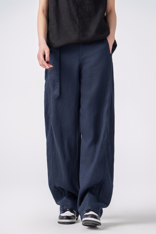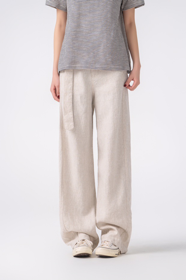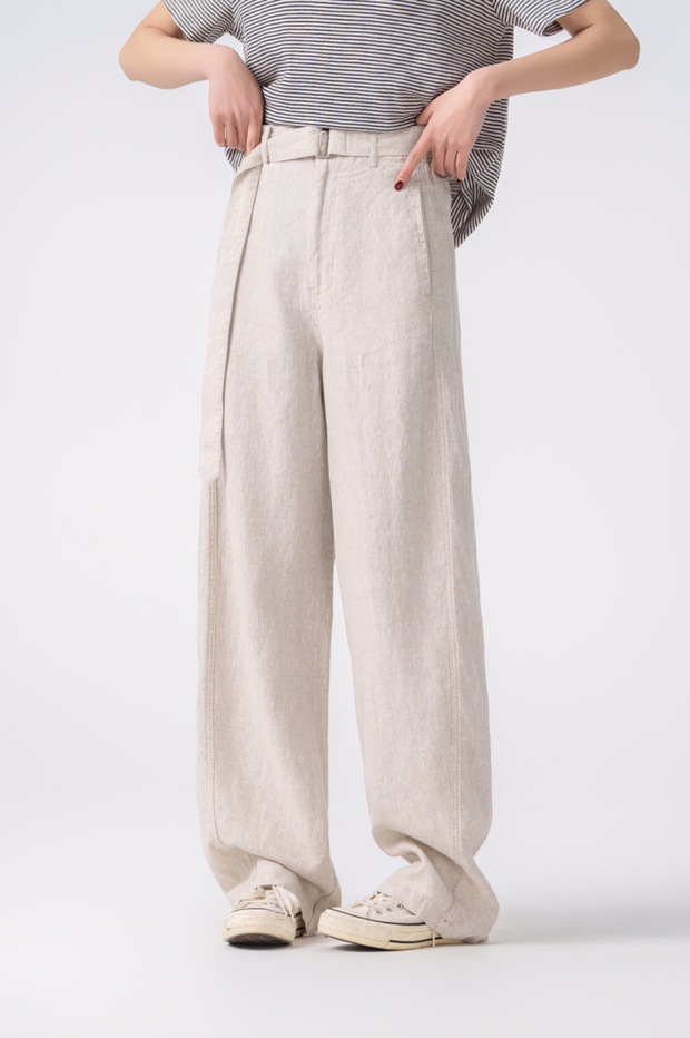 봄 2025 새로운 한국 스타일 조정 가능한 벨트 높은 허리 슬리밍 모든 캐주얼 바지 여성의 느슨한 스트레이트 와이드 레그 바지