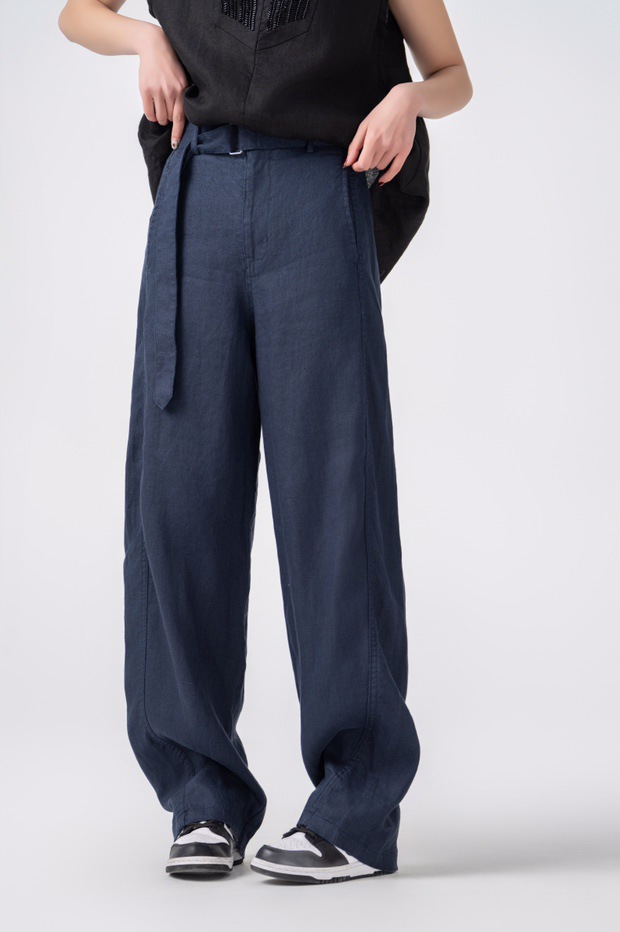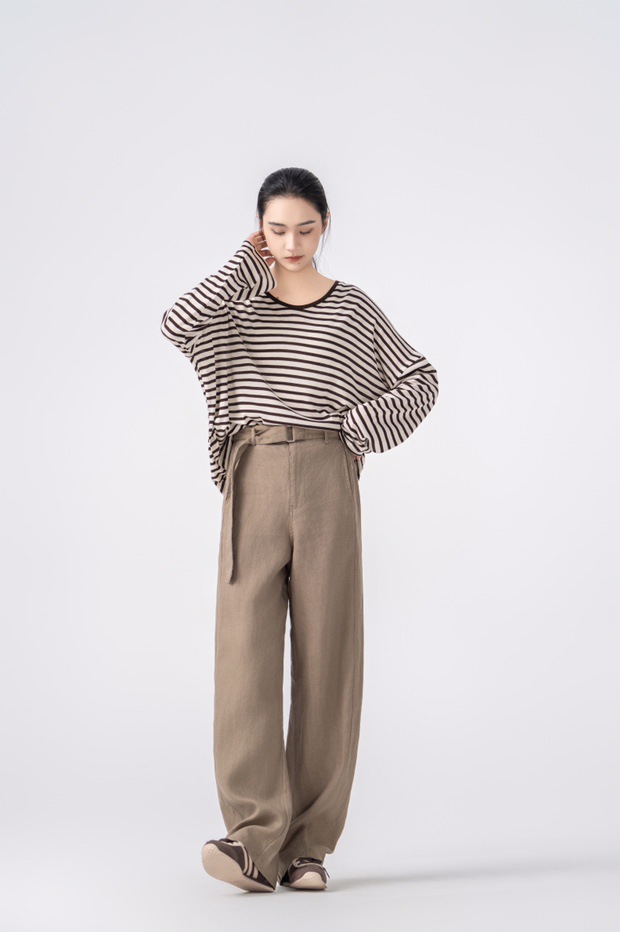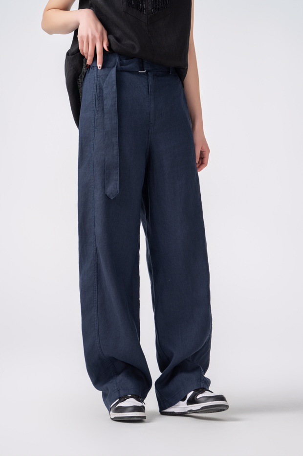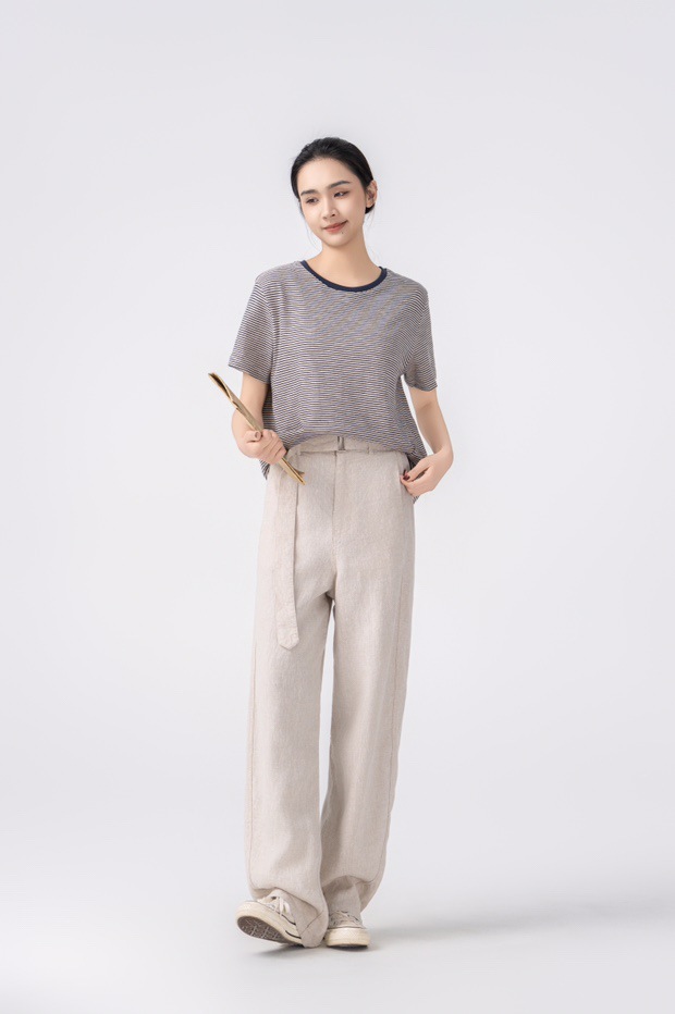 봄 2025 새로운 한국 스타일 조정 가능한 벨트 높은 허리 슬리밍 모든 캐주얼 바지 여성의 느슨한 스트레이트 와이드 레그 바지스토어 가기
