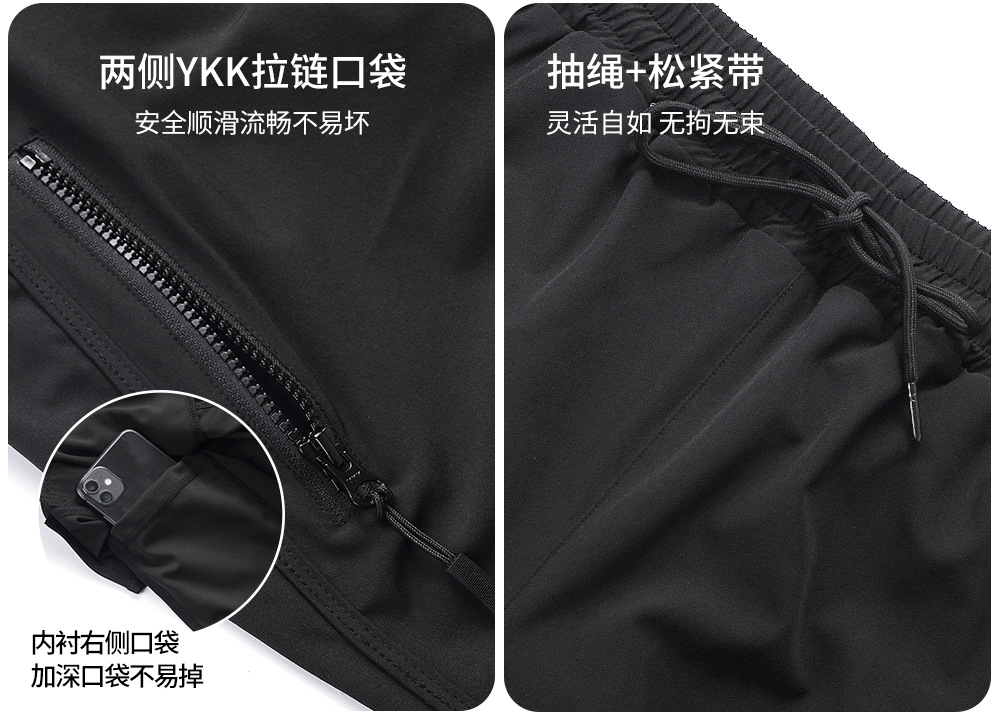 5. 便捷口袋:外裤双侧YKK拉链口袋,内裤右腿侧面插入式口袋,可稳妥存放随身物品。
