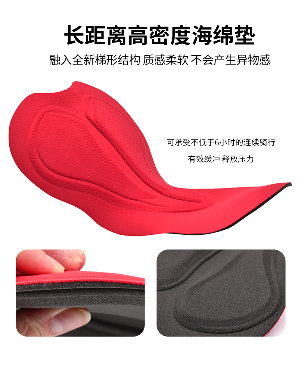 3. 内置裤垫:配备不可拆卸的红色海绵坐垫,坐垫透气且具有减震功能。