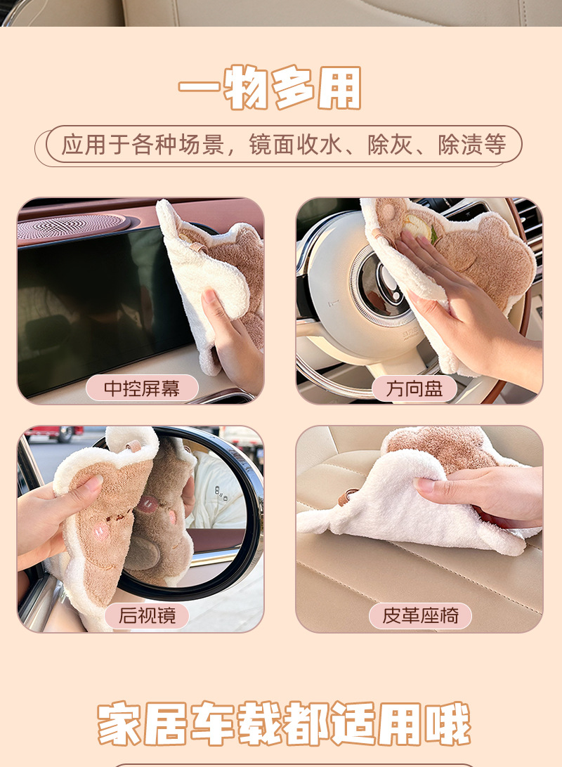 만화 자동차 닦는 수건 귀여운 플러시 먼지 제거 흡수 빠른 건조 산호 벨벳 자동차 닦는 수건 차량 청소 도구