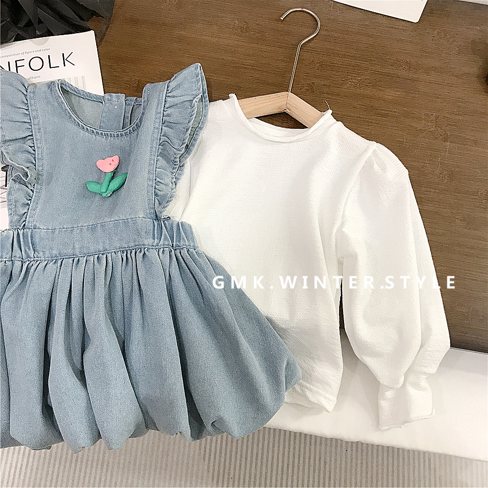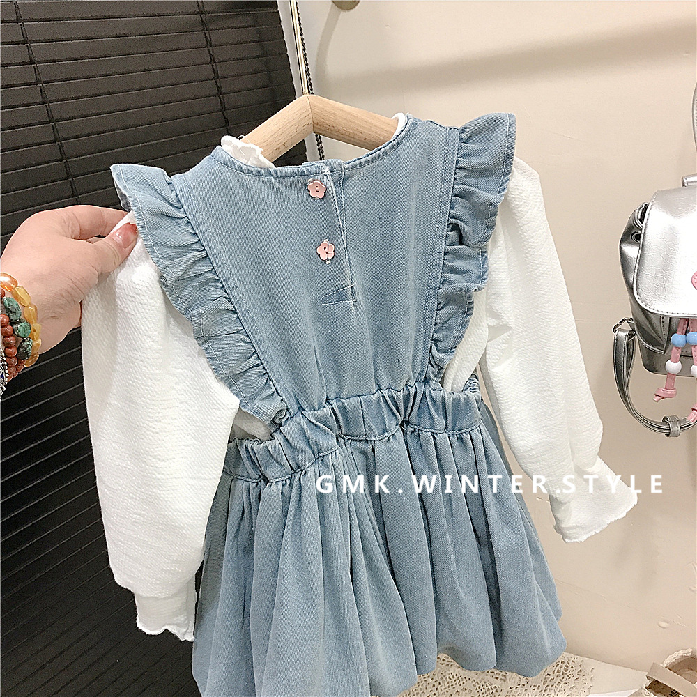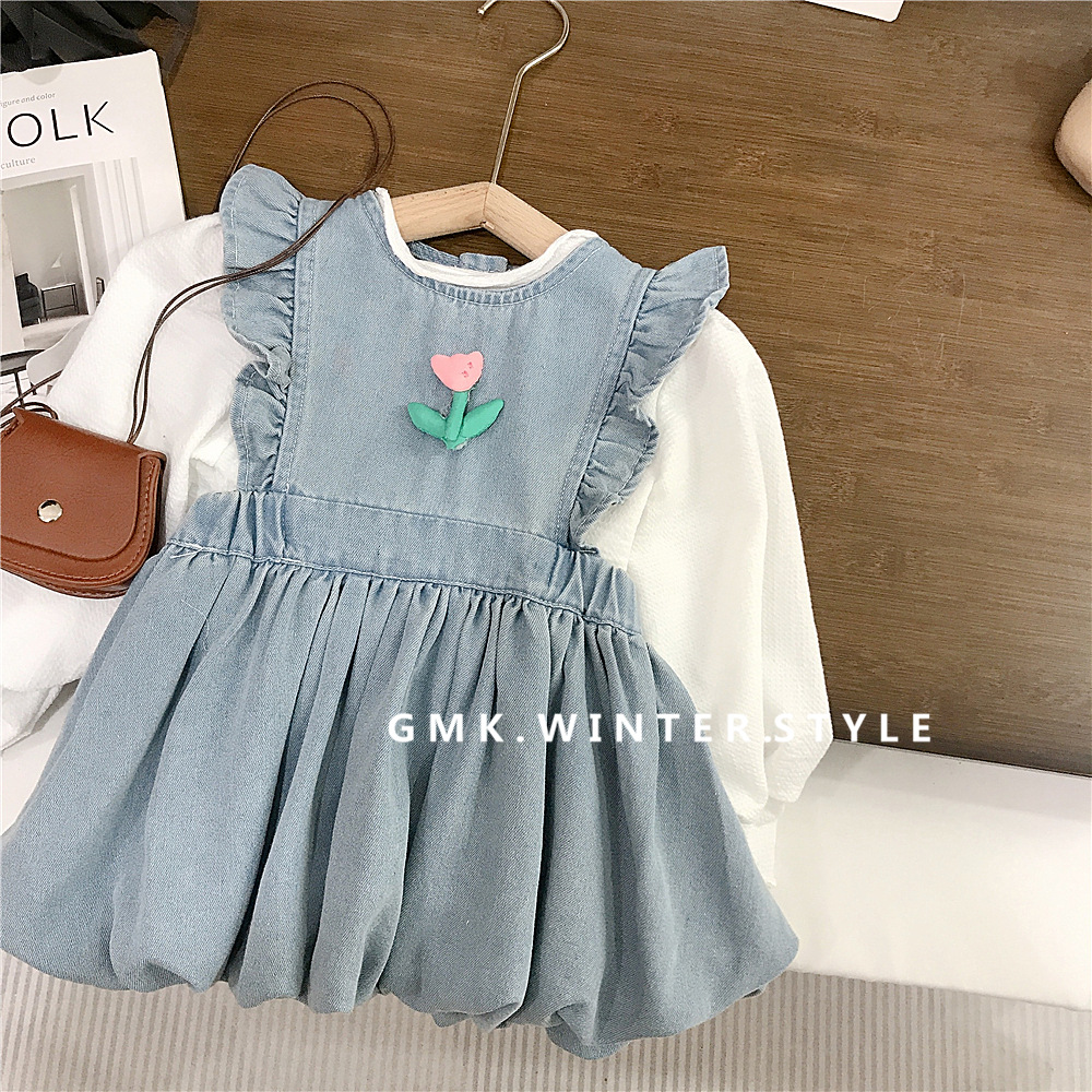소녀 서스펜더 Culottes 봄과 가을 새로운 어린이 비행 슬리브 빅 스커트 바지 아기 소녀 데님 버드 원피스스토어 가기