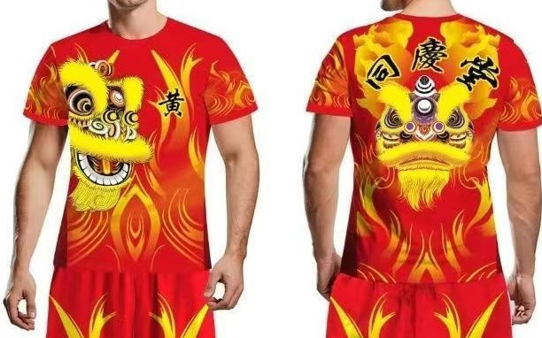 라이온 댄스 의류 새로운 클래스 의류 사자 댄스 의류 공연 의류 티셔츠 반팔 남성 여성의 통기성 빠른 건조 티셔츠 탑