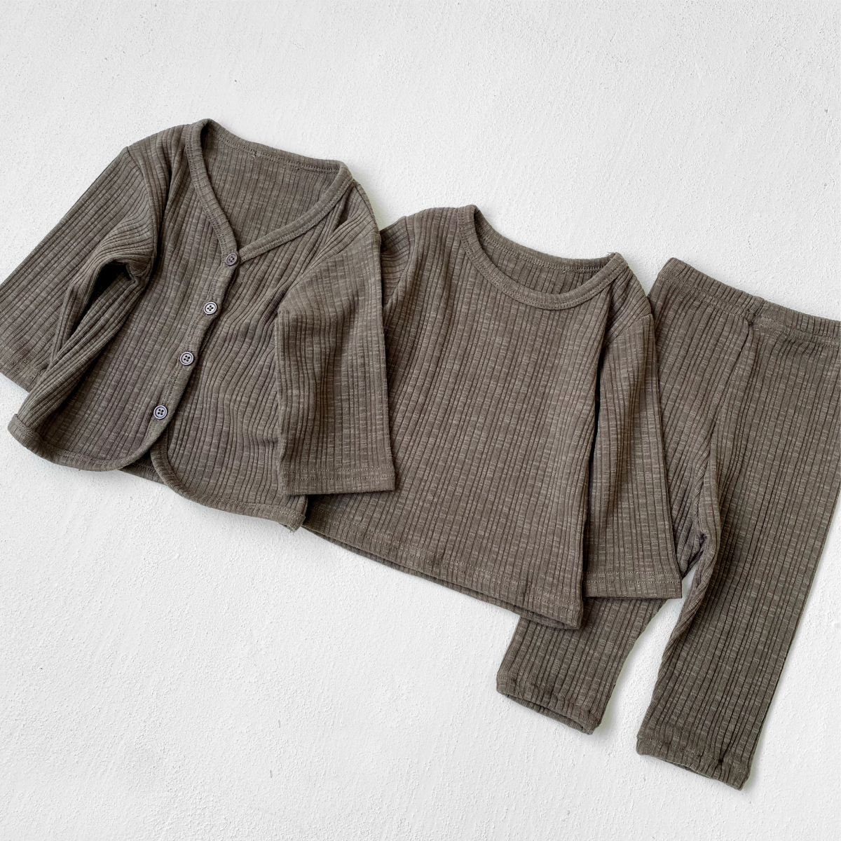 • 브라운 쓰리피스 슈트 (가디건+탑+바지)