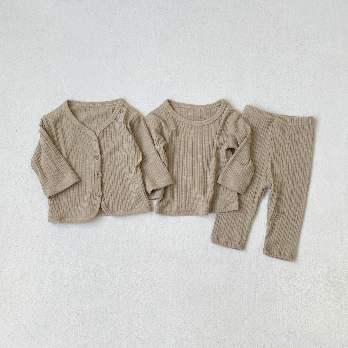 신생아 옷 소년 소녀를위한 봄 옷 부드러운 왁스 핏 에어컨 홈 의류 세트 아기 봄과 여름 3 피스 세트스토어 가기