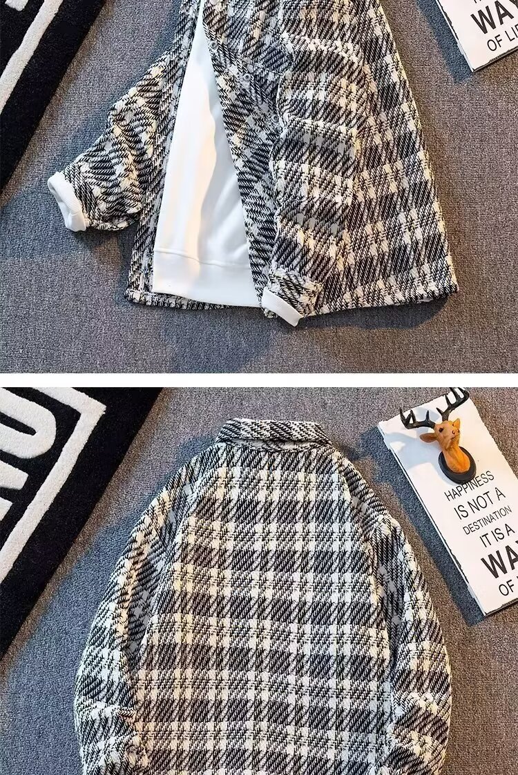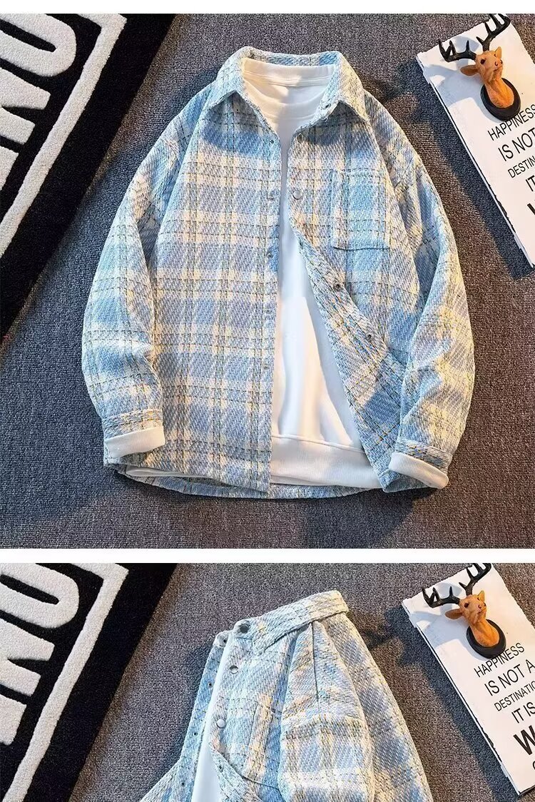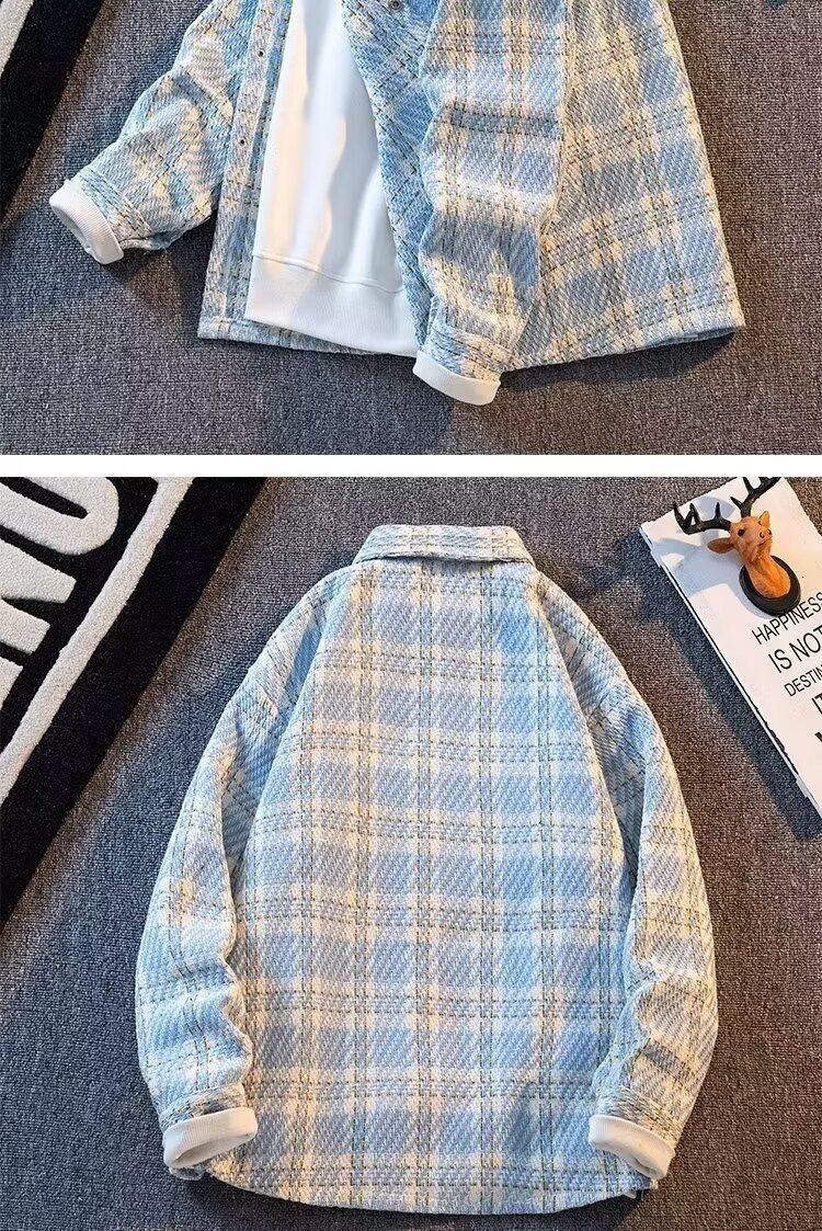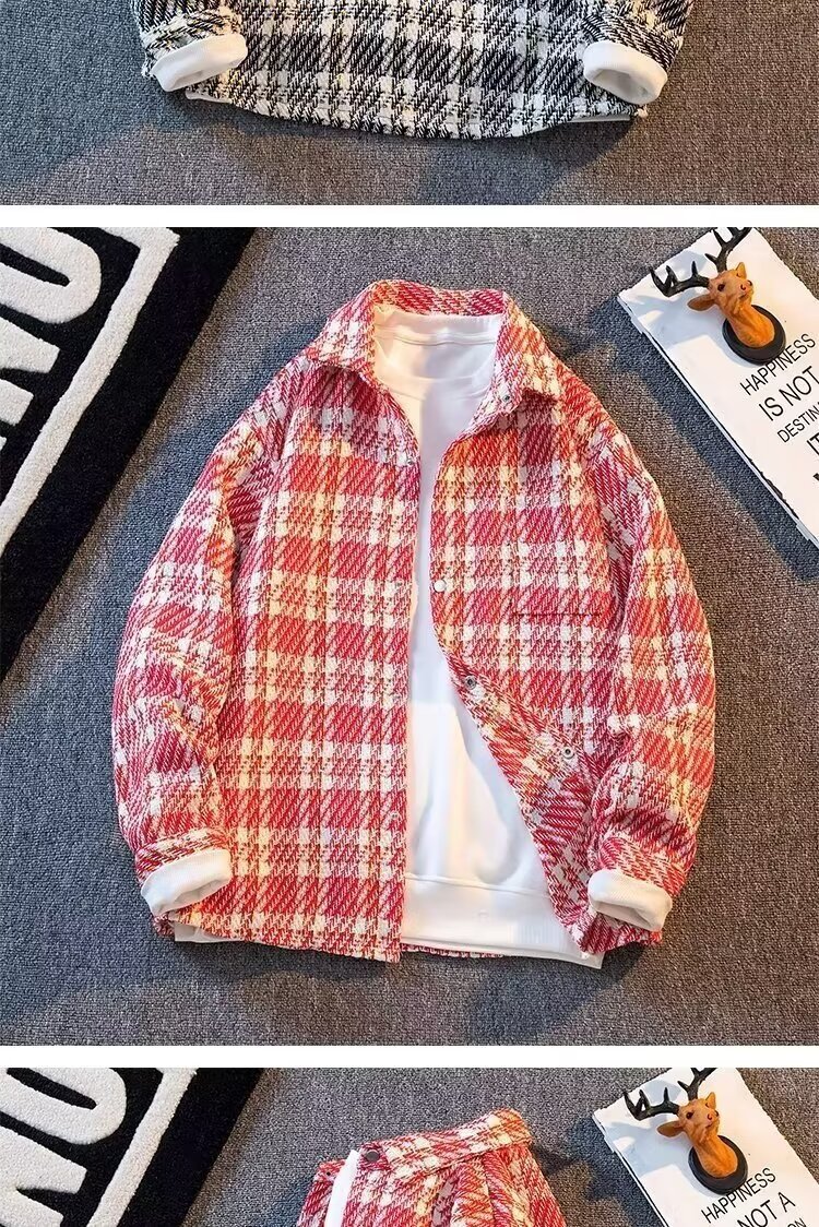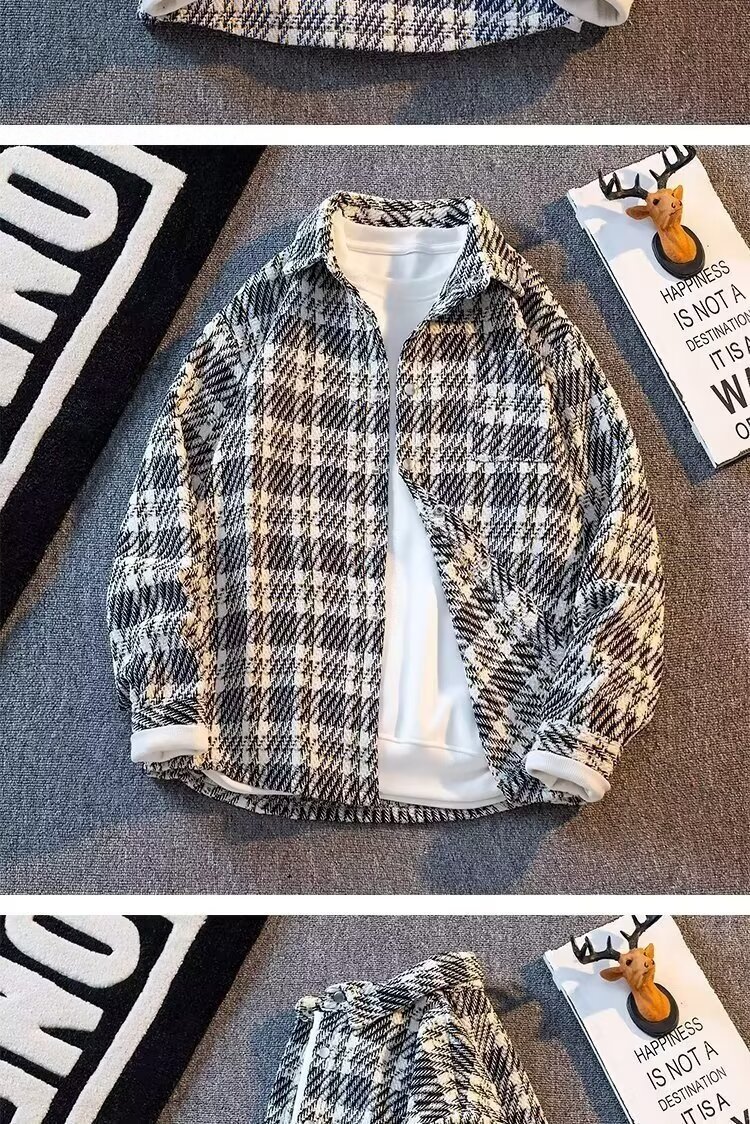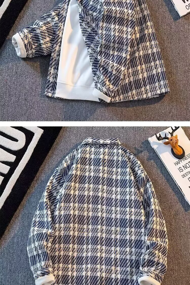 샤넬 스타일 격자 무늬 재킷 남성용 봄철 트렌디 한 10 대 학생 올 매치 느슨한 패치 워크 격자 무늬 셔츠 재킷