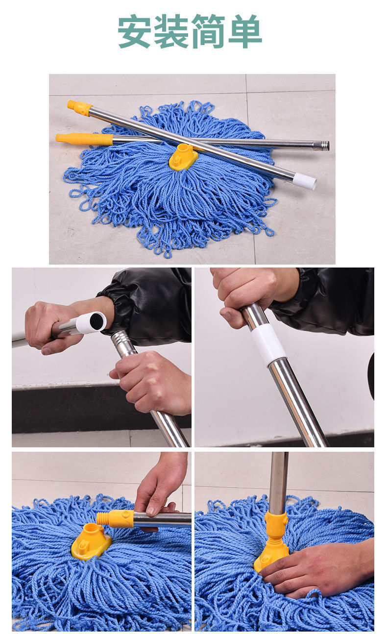 강력한 흡수성 마이크로 화이버 걸레 섬유면 실 게으른 둥근 머리 물 마크 걸레 교체 헤드 우송이 국경