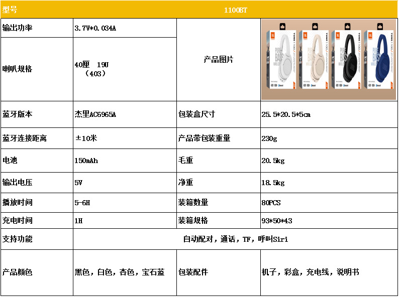 JBL11000BT 국경 간 폭발에 적합 새로운 무선 귀 헤드셋 블루투스 헤드셋 로고 Huaqiang North