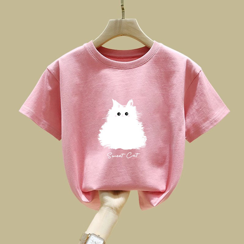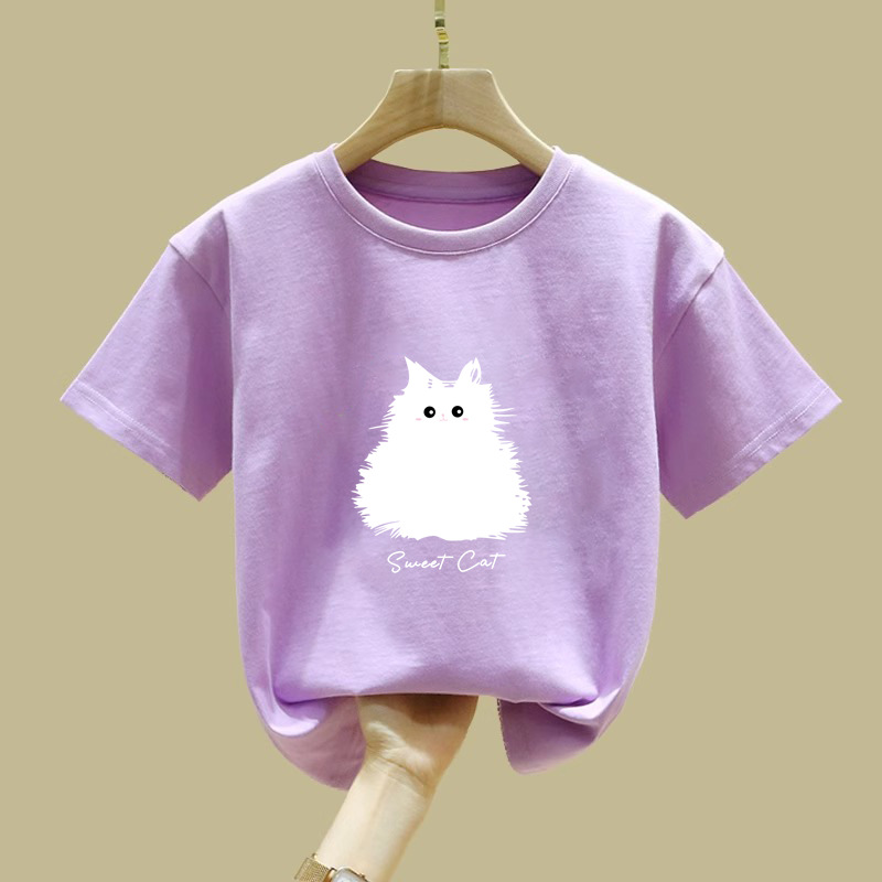 2410 #100 면 어린이 소년과 소녀 짧은 소매 티셔츠 탑 2025 여름 새로운 아기 내베이스 셔츠