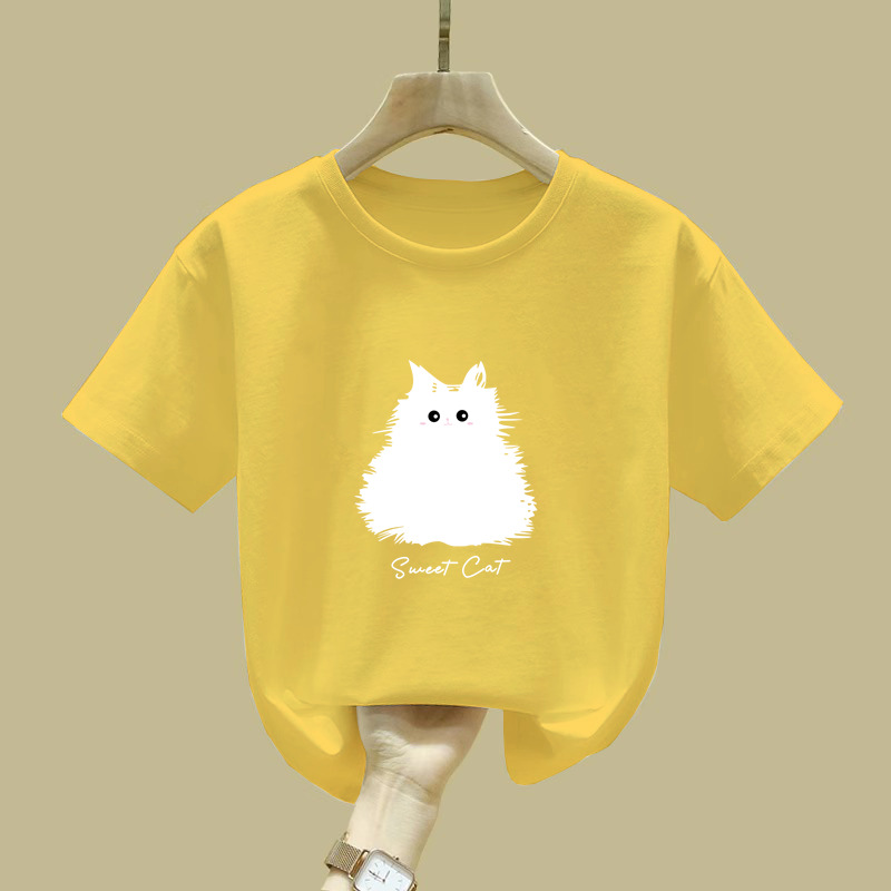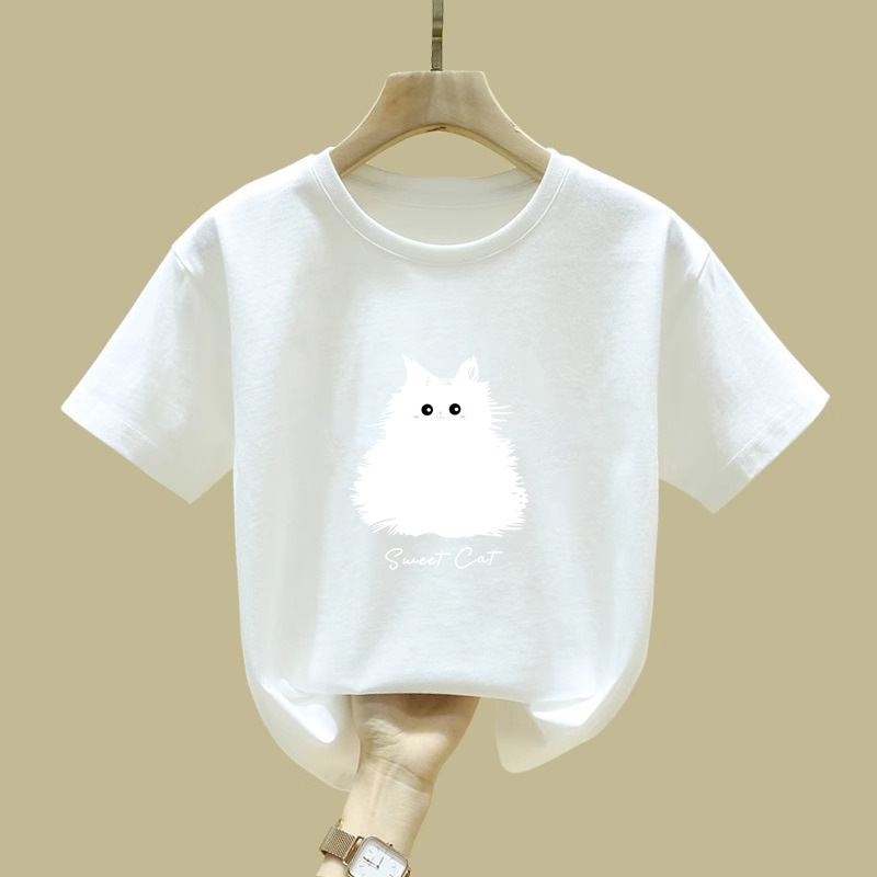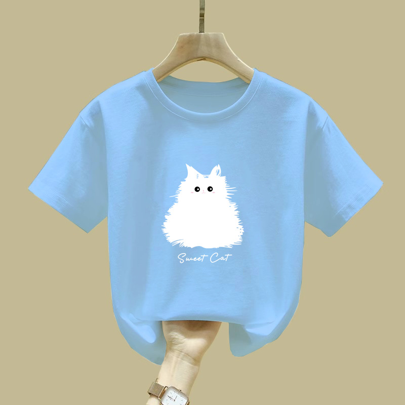 2410 #100 면 어린이 소년과 소녀 짧은 소매 티셔츠 탑 2025 여름 새로운 아기 내베이스 셔츠스토어 가기