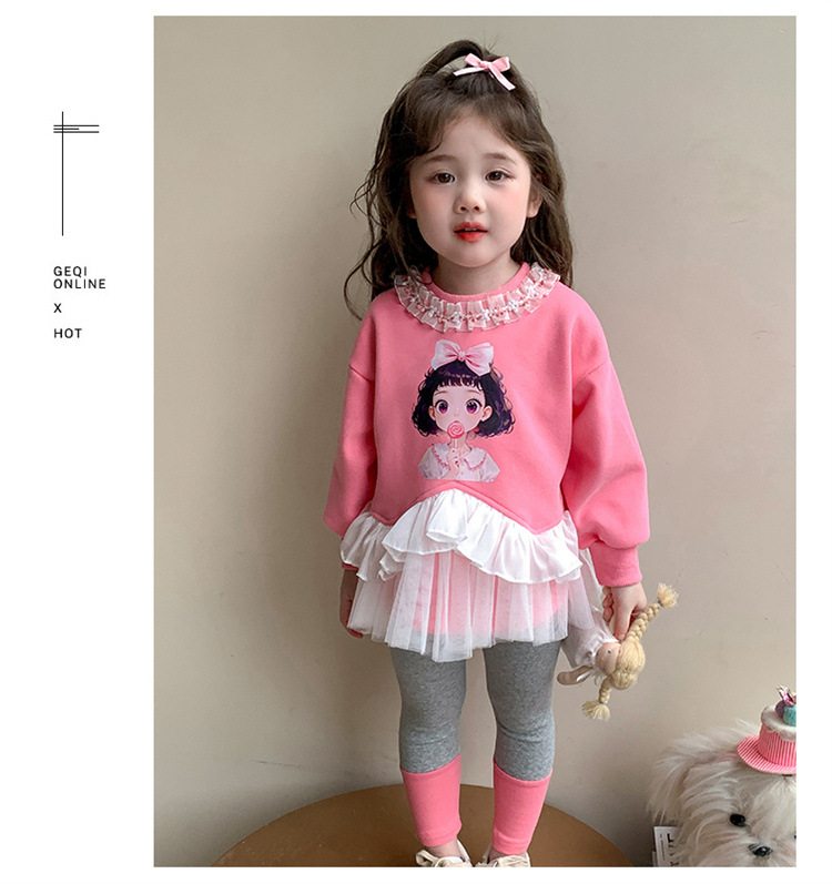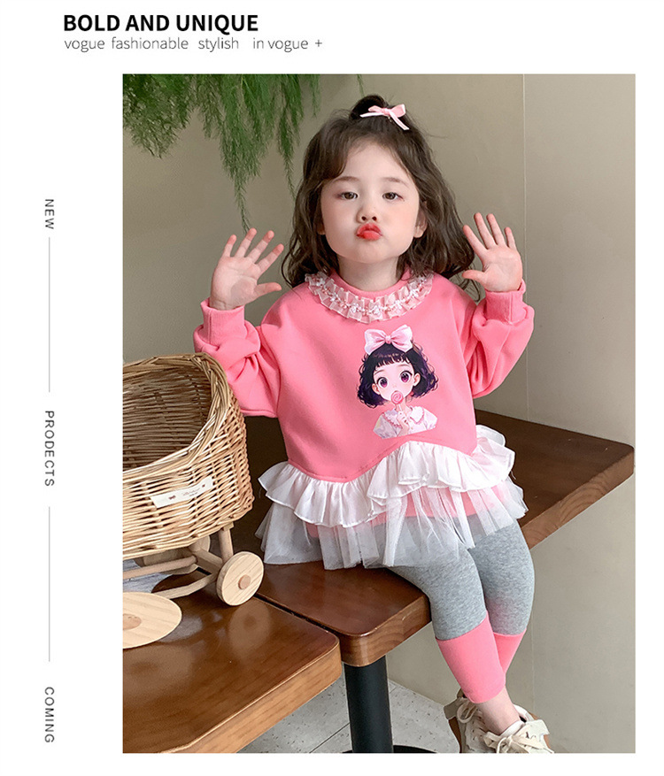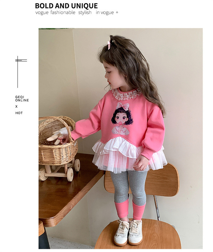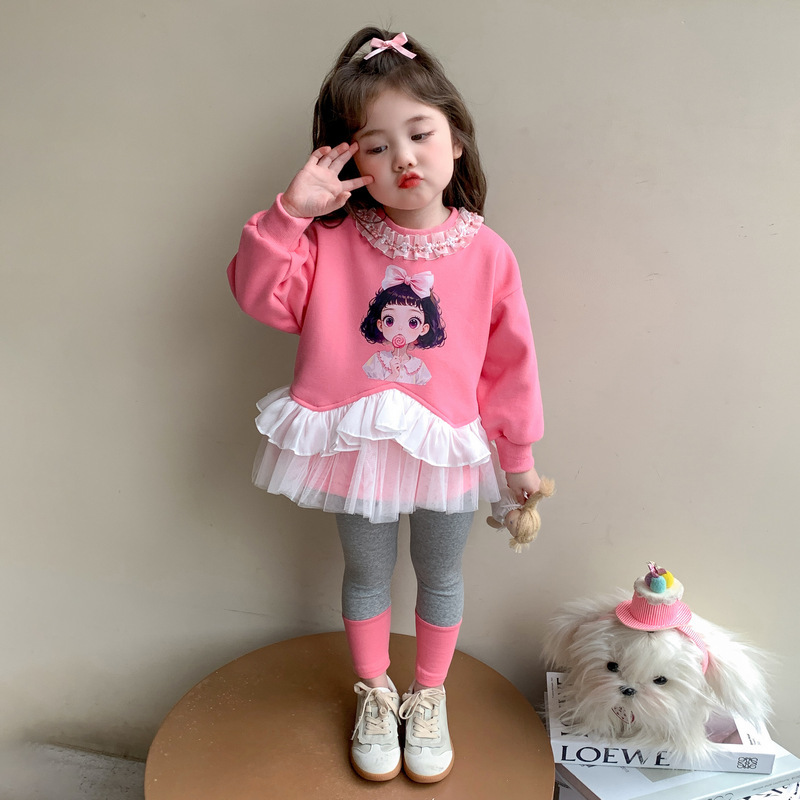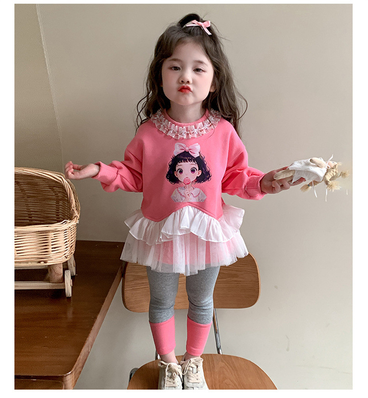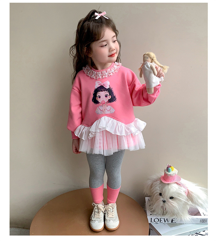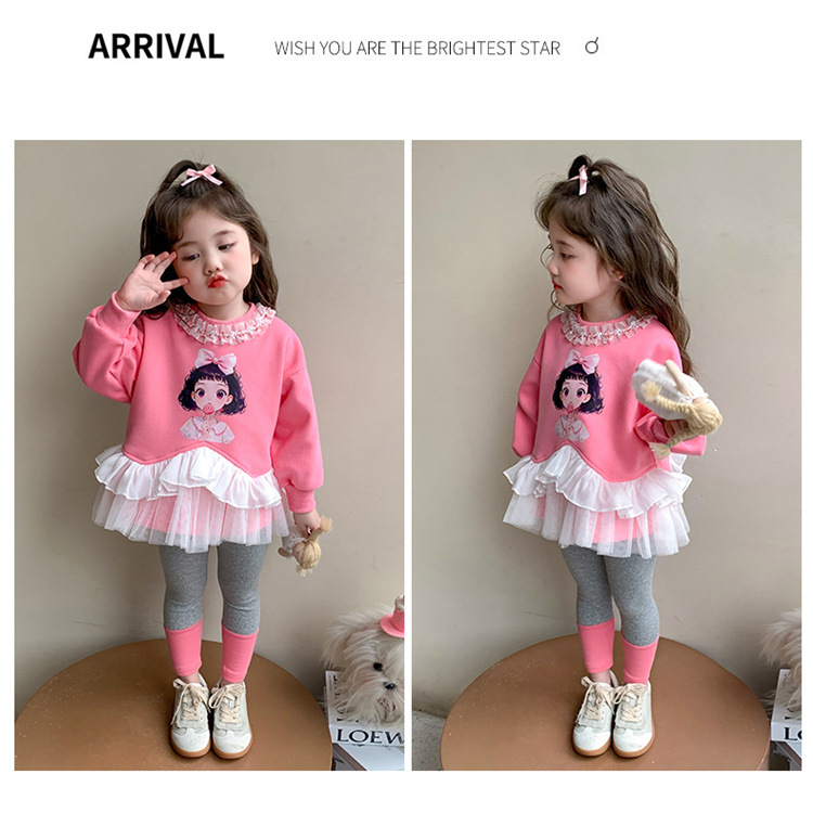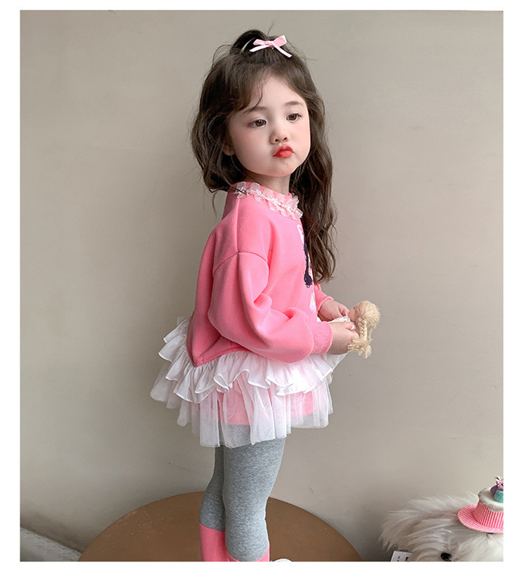 소녀의 세련된 유행 세트 봄과 가을 아기 소녀의 메쉬 땀 봄 원피스 어린 소녀의 레깅스 2 피스 세트