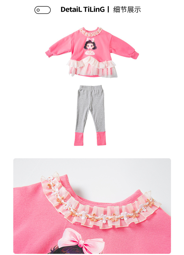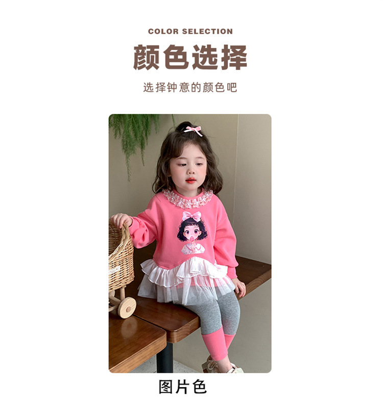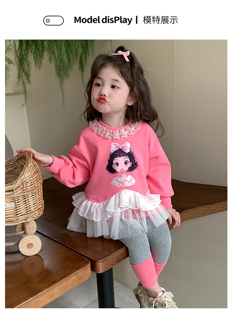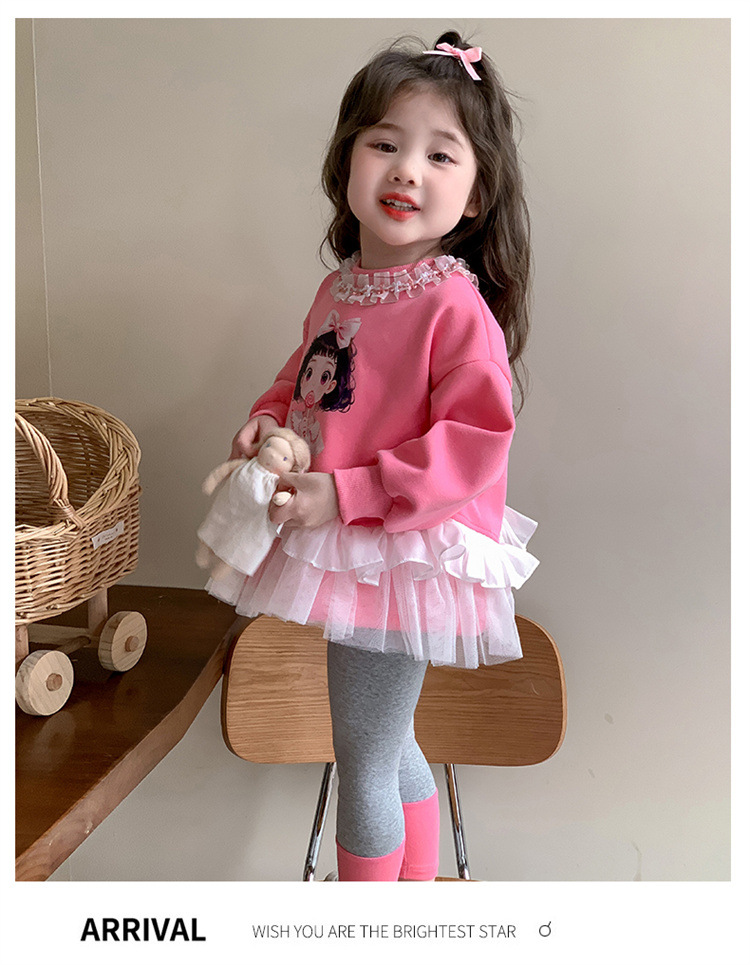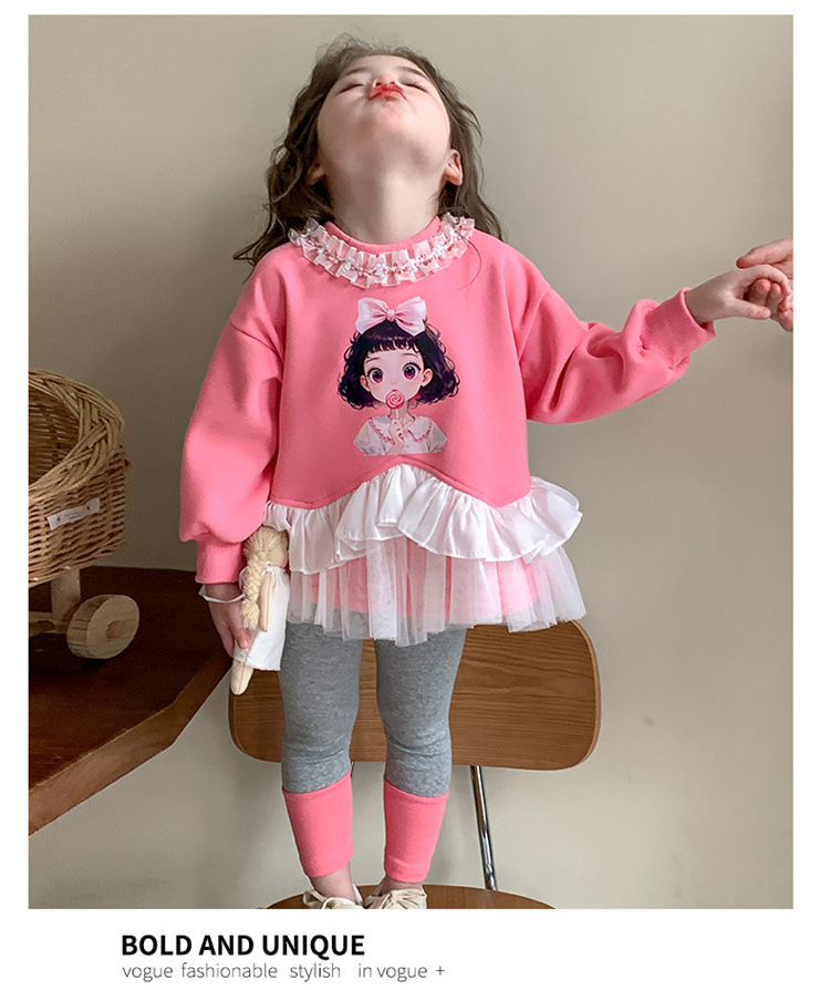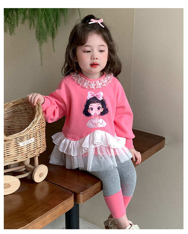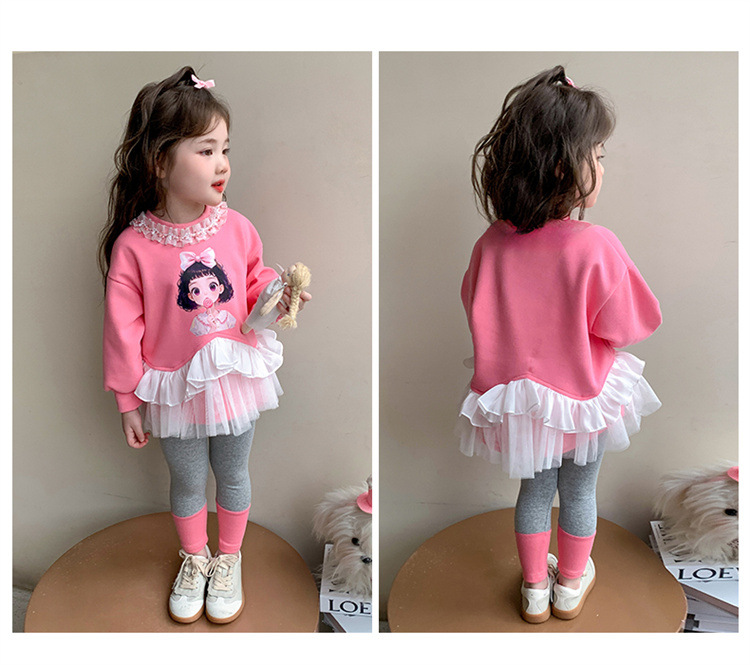 소녀의 세련된 유행 세트 봄과 가을 아기 소녀의 메쉬 땀 봄 원피스 어린 소녀의 레깅스 2 피스 세트