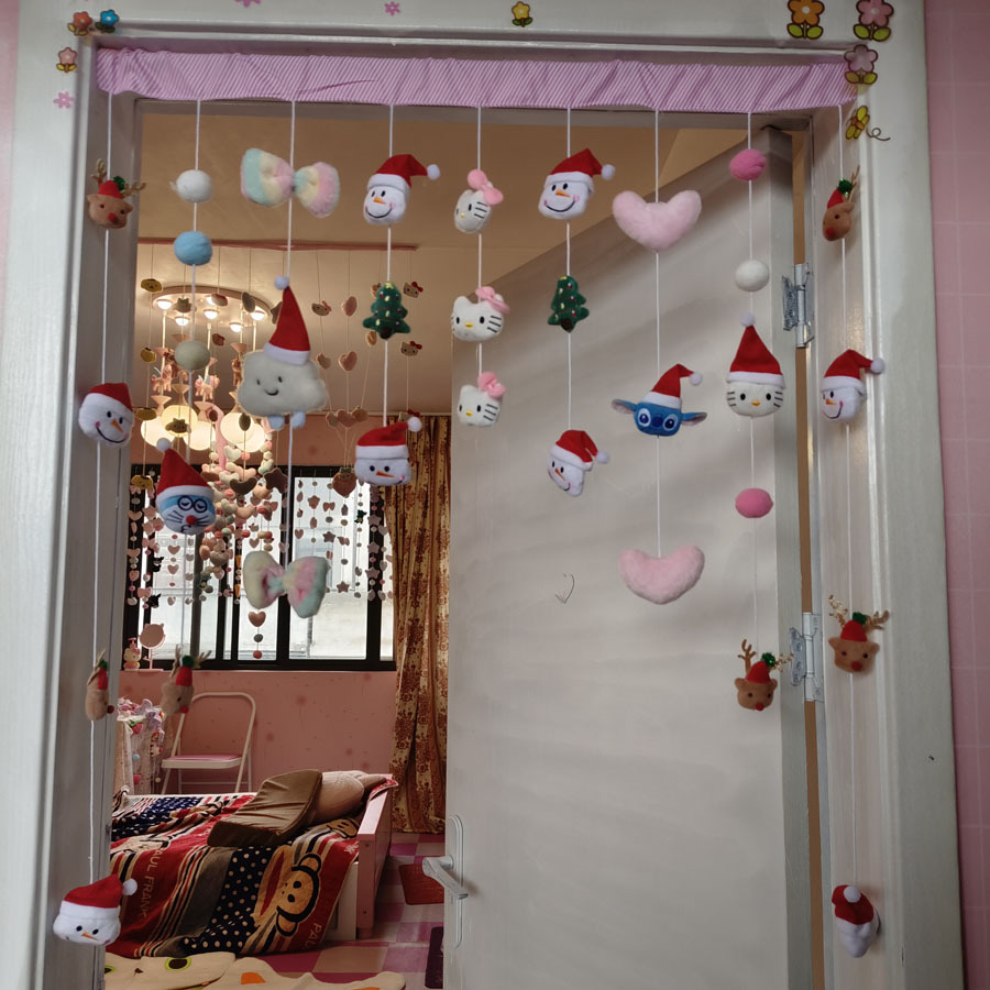 푸 모자 가족 크라우드 가족 침실 펀치 프리 셀프 페이스트 파티션 룸 장식 문 교수형 커튼 홈 구슬 커튼 덜스토어 가기
