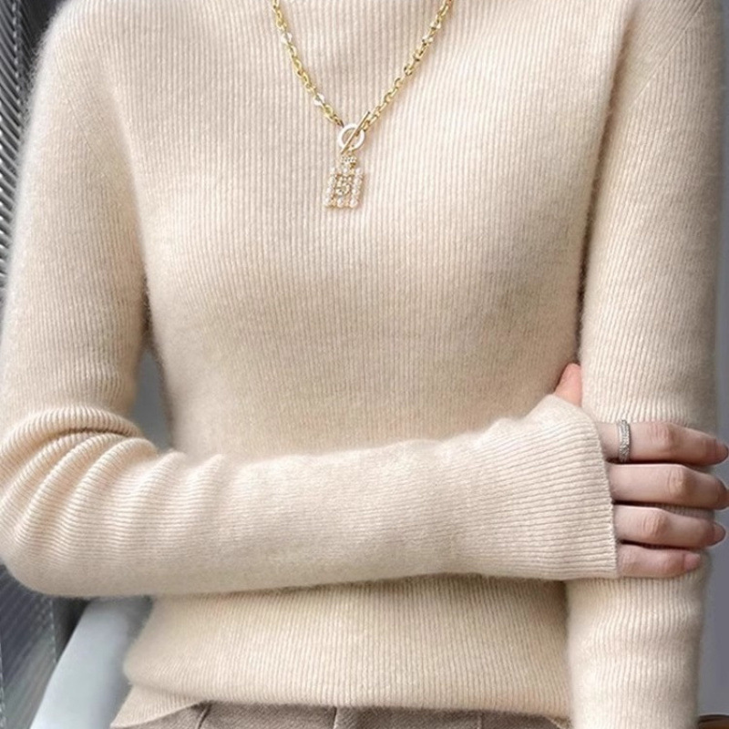 살구색 엔트리 럭셔리 샤넬 스타일 스웨터 여성 내복 2025 가을 및 겨울 새로운 니트 하프 터틀넥 풀오버 슬림베이스 셔츠