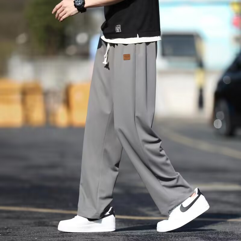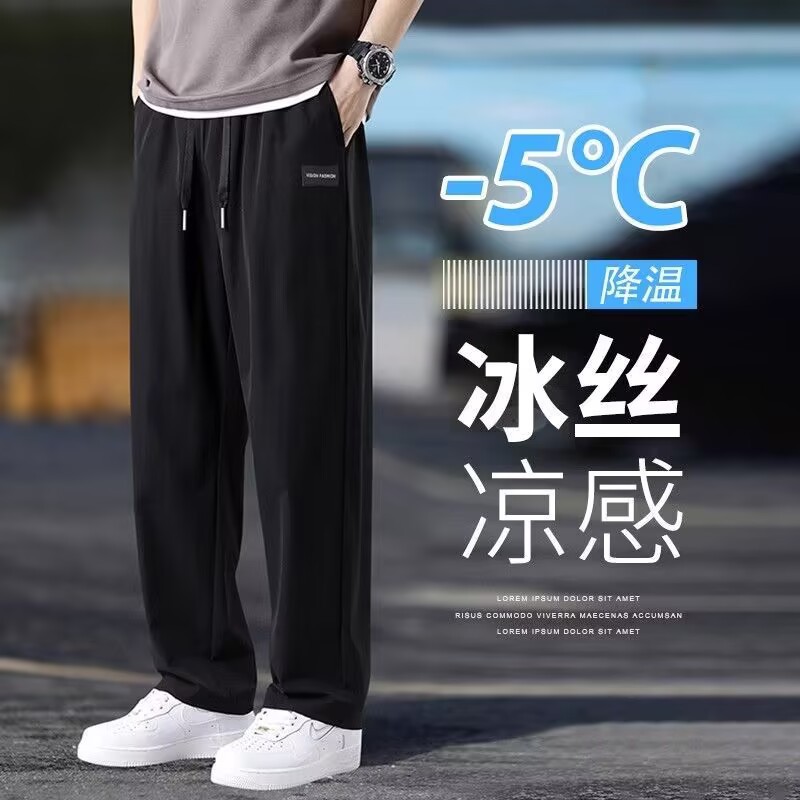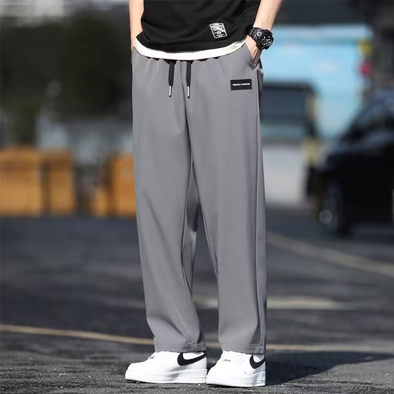 제조업체 캐주얼 바지 남성용 봄 여름 롱 팬츠 스트레이트 루즈핏 스포츠 팬츠 여름 신상 아이스 실크 바지 남성용 여름스토어 가기