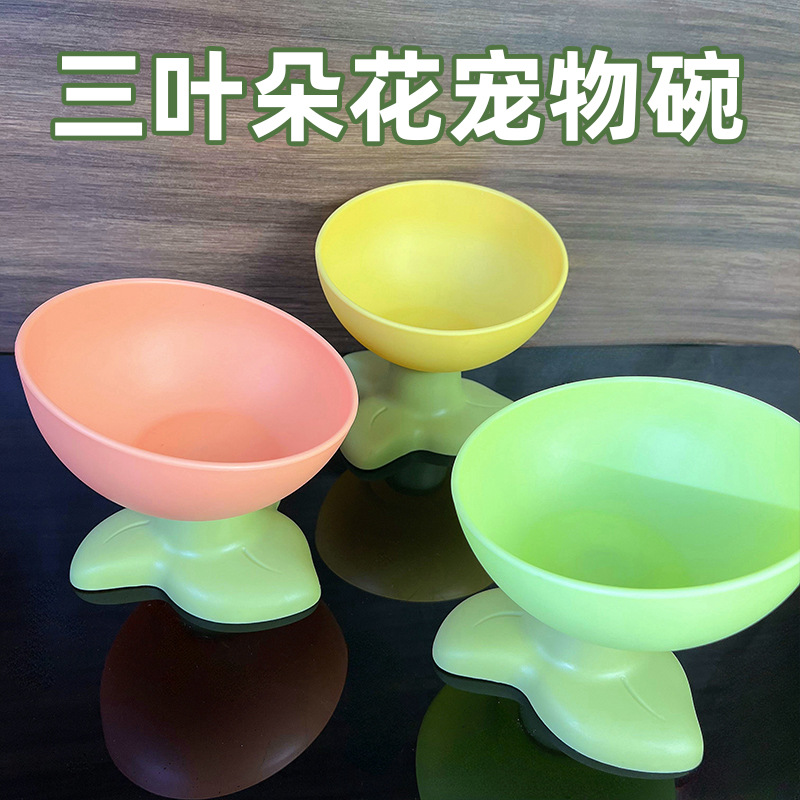 고양이 그릇 경사 입 보호 자궁 경부 척추 3 잎 꽃 고양이 그릇 안티 노크 대형 구경 캔디 컬러 하이 풋 그릇 애완 동물 그릇스토어 가기