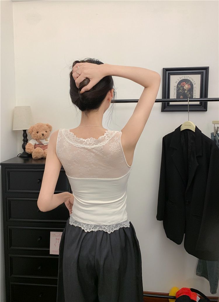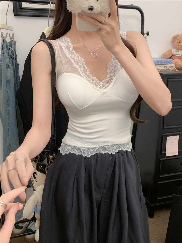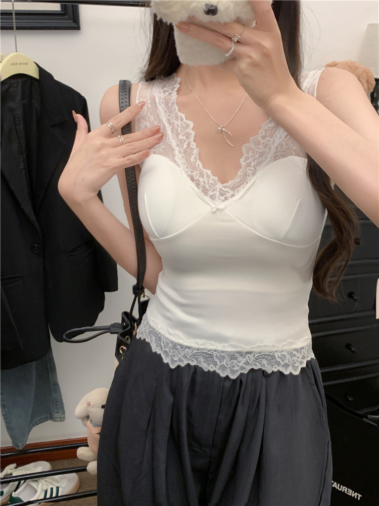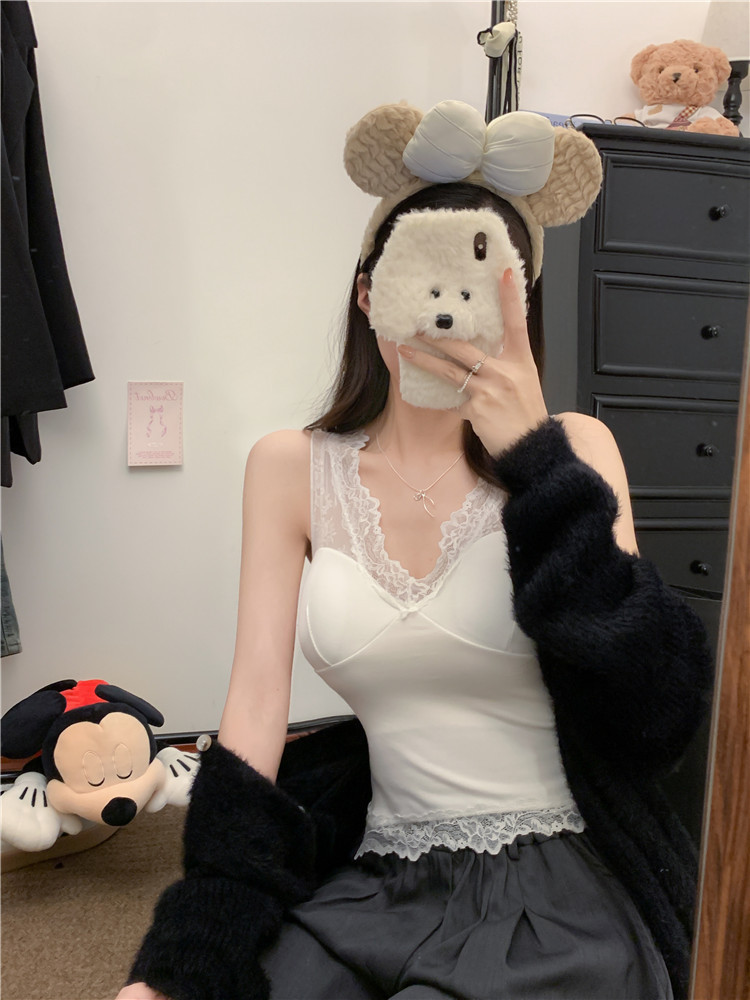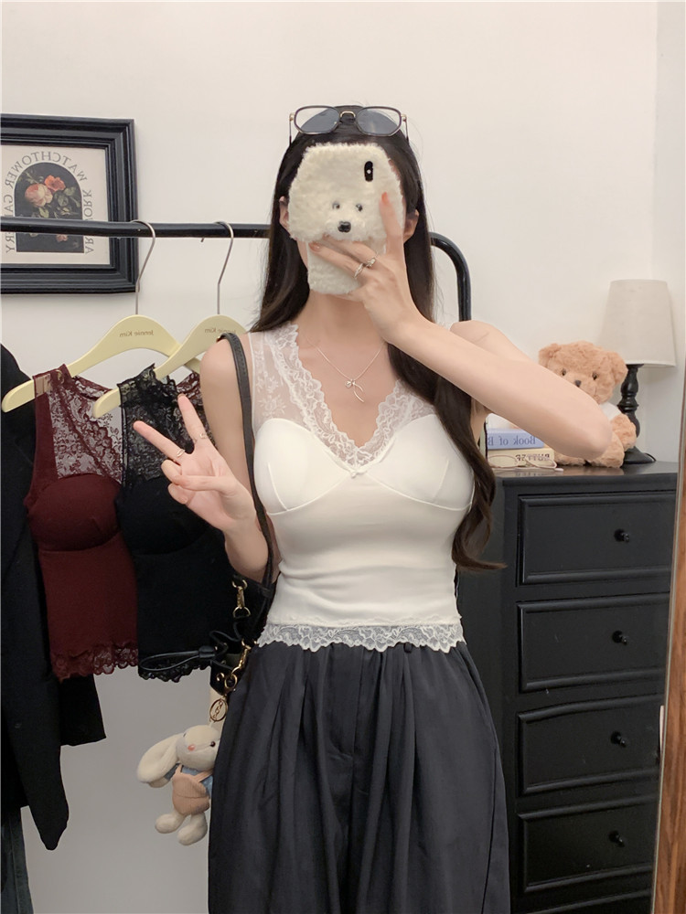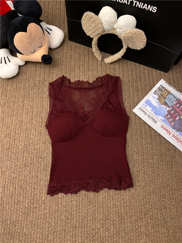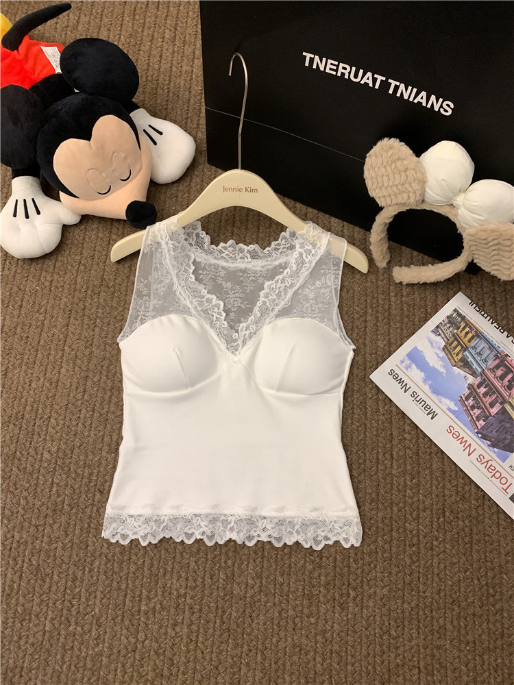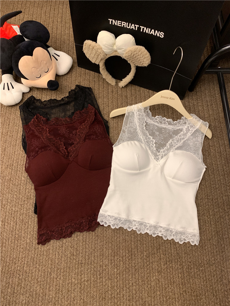 실제 샷 실제 가격 ~ 부드러운 순수 레이스 스티칭 기본 조끼 샌딩 따뜻한 슬림 탑 가슴 패드스토어 가기
