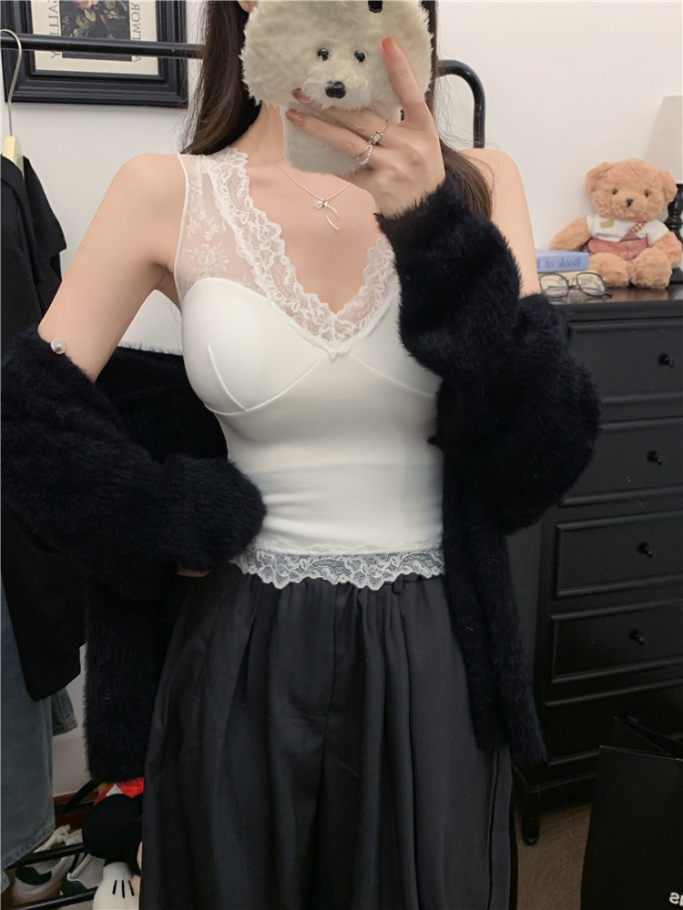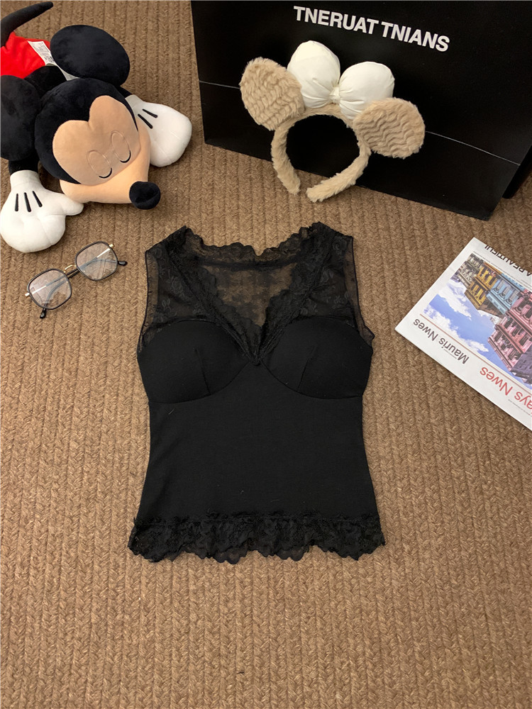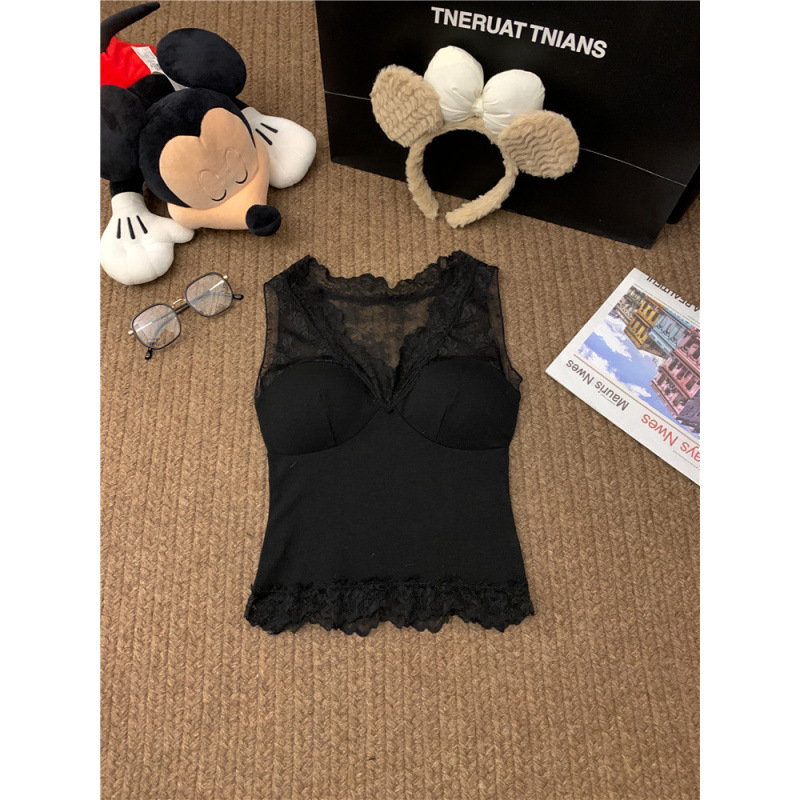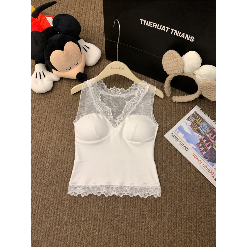 실제 샷 실제 가격 ~ 부드러운 순수 레이스 스티칭 기본 조끼 샌딩 따뜻한 슬림 탑 가슴 패드