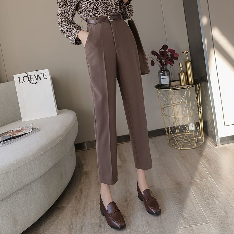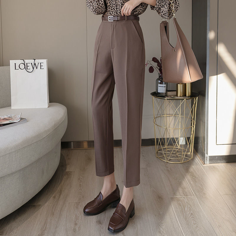 여성용 스트레이트 바지 높은 허리 슬리밍 봄과 여름 새로운 전문 블랙 크롭 캐주얼 패셔너블 작은 다리 바지