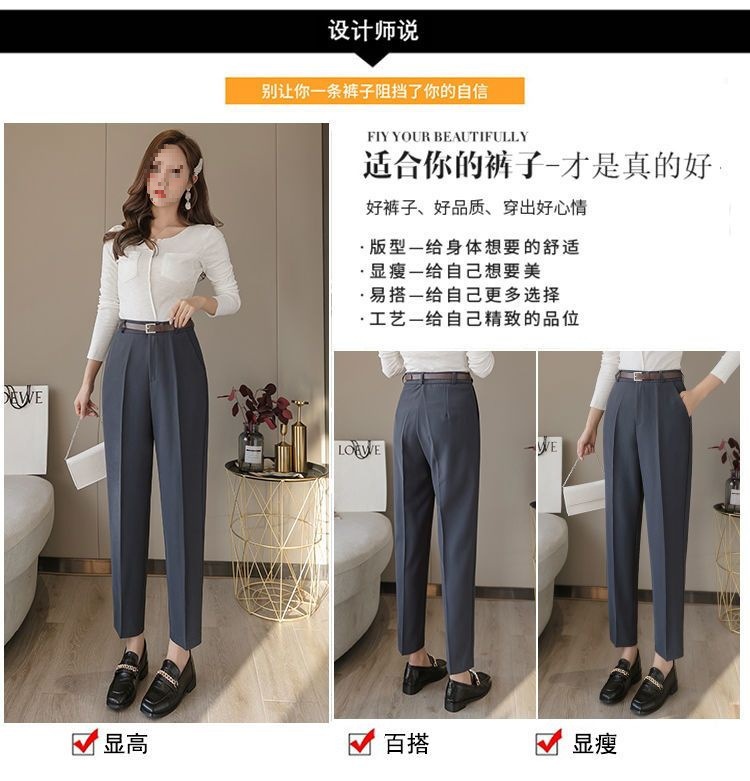 여성용 스트레이트 바지 높은 허리 슬리밍 봄과 여름 새로운 전문 블랙 크롭 캐주얼 패셔너블 작은 다리 바지스토어 가기