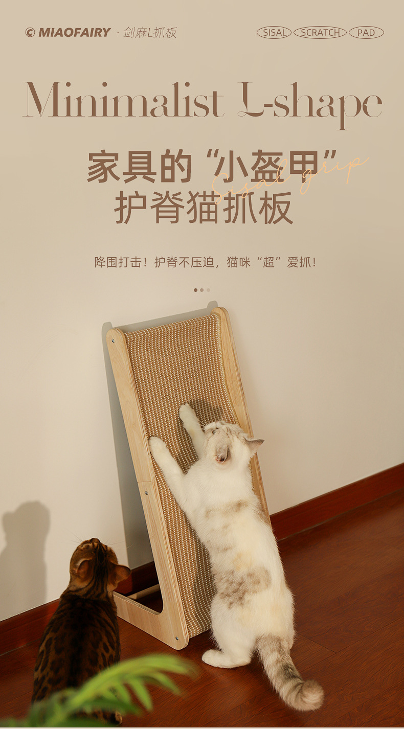 • 단단한 나무 사이잘 L자형 고양이 긁는 기둥