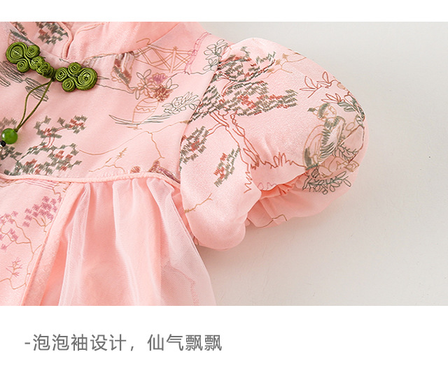 여자 아기를위한 한 살짜리 원피스 2025 여름 아기 중국 스타일 소녀 Zhou Guochao 생일 파티 공주 원피스 탕 세트 붙잡고스토어 가기