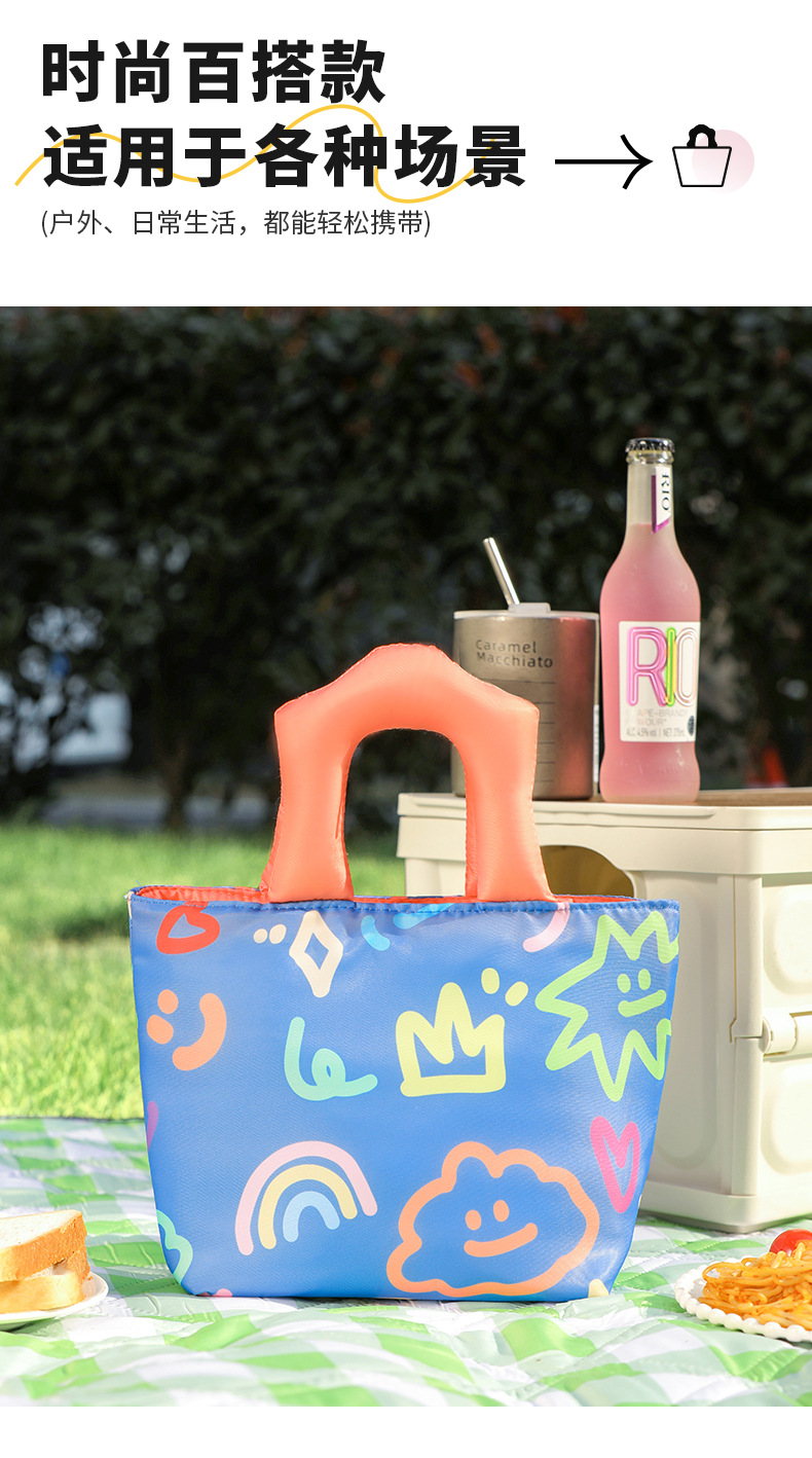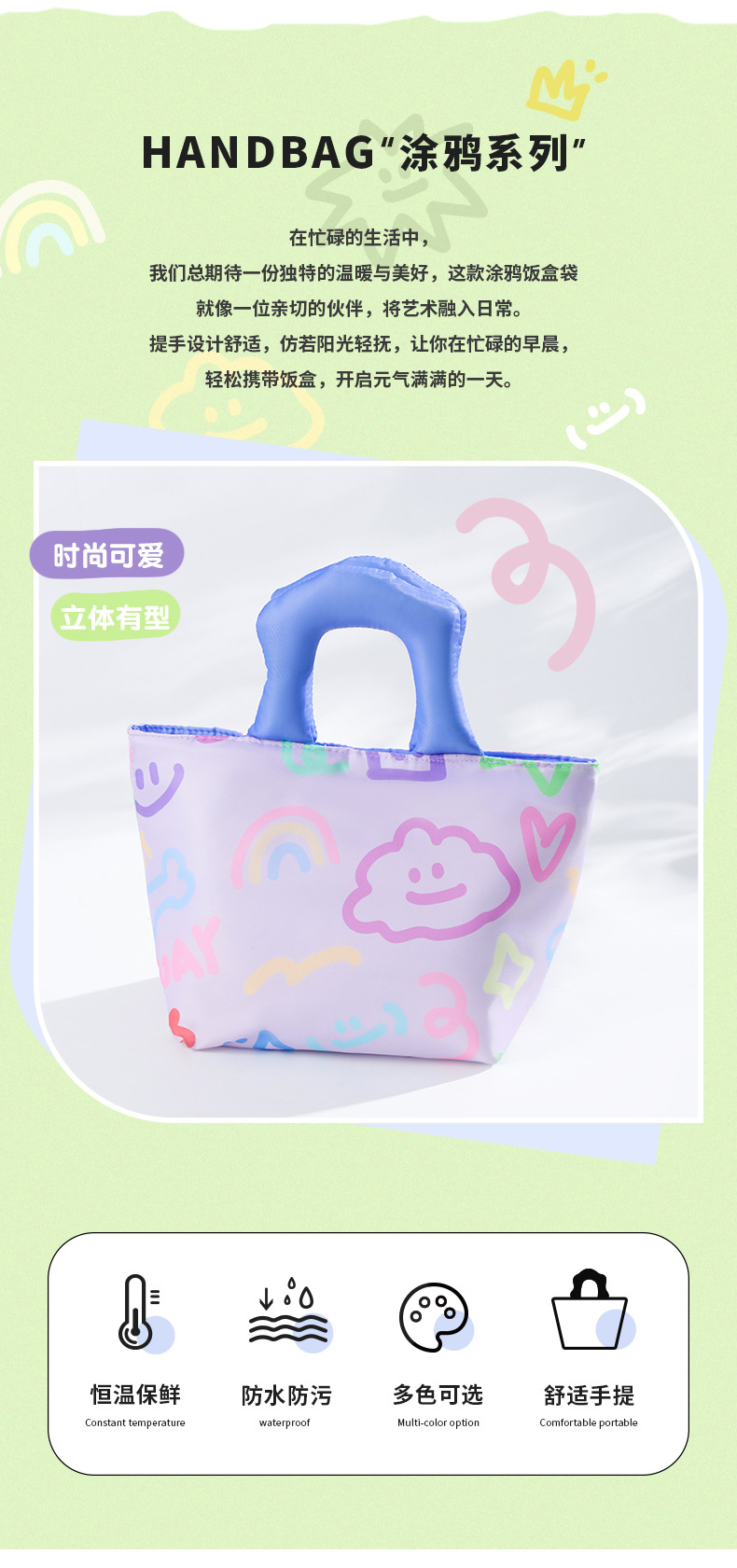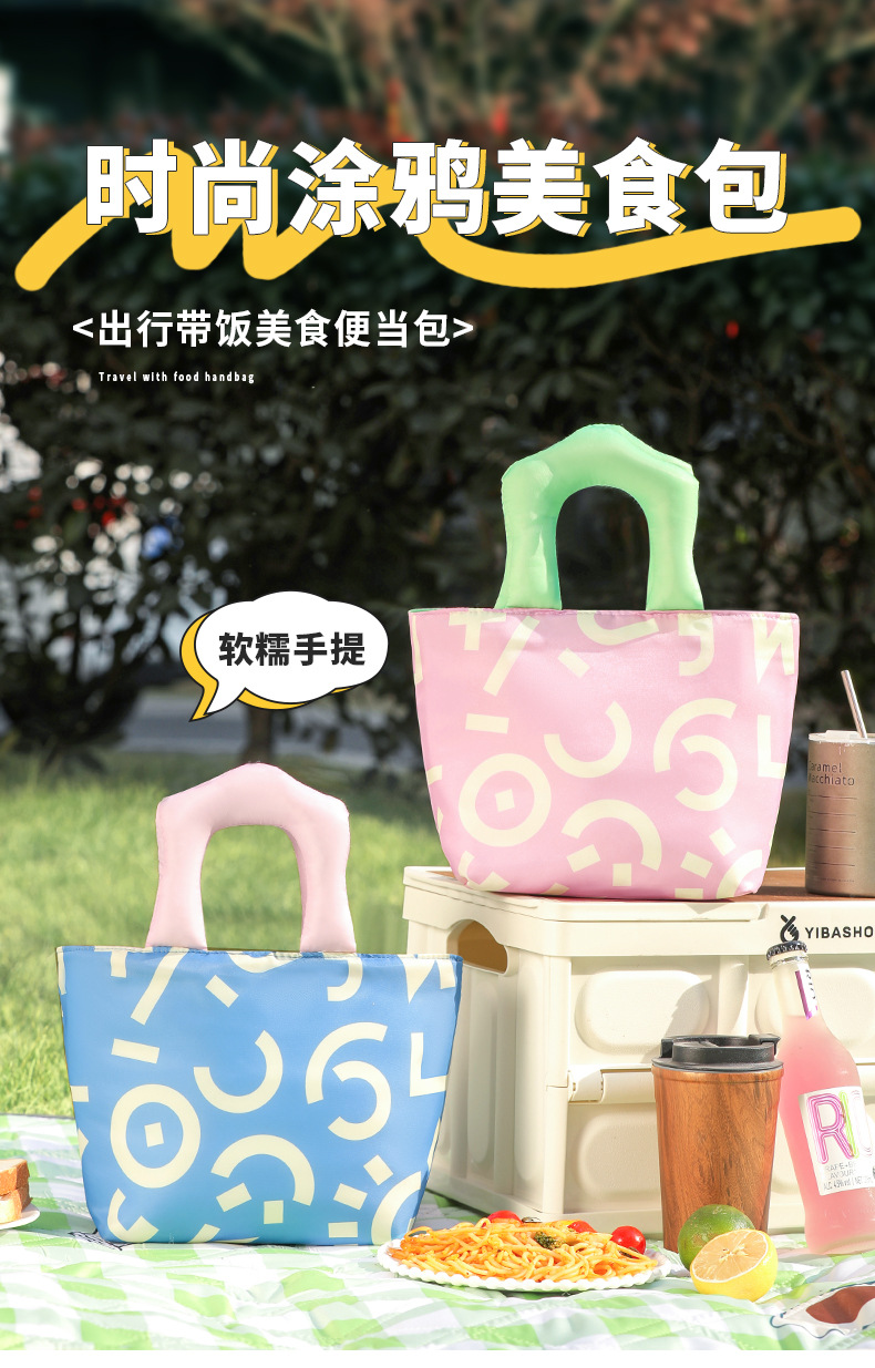2025 새로운 손으로 그린 낙서 식사 가방 두꺼운 휴대용 도시락 가방 사무실 학생을위한 방수 및 내유성 도시락 가방