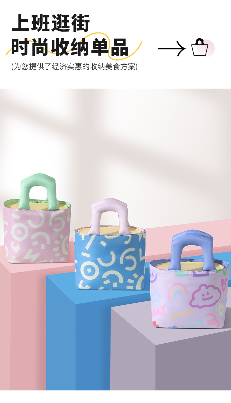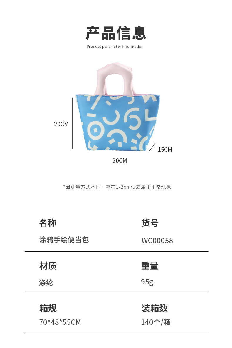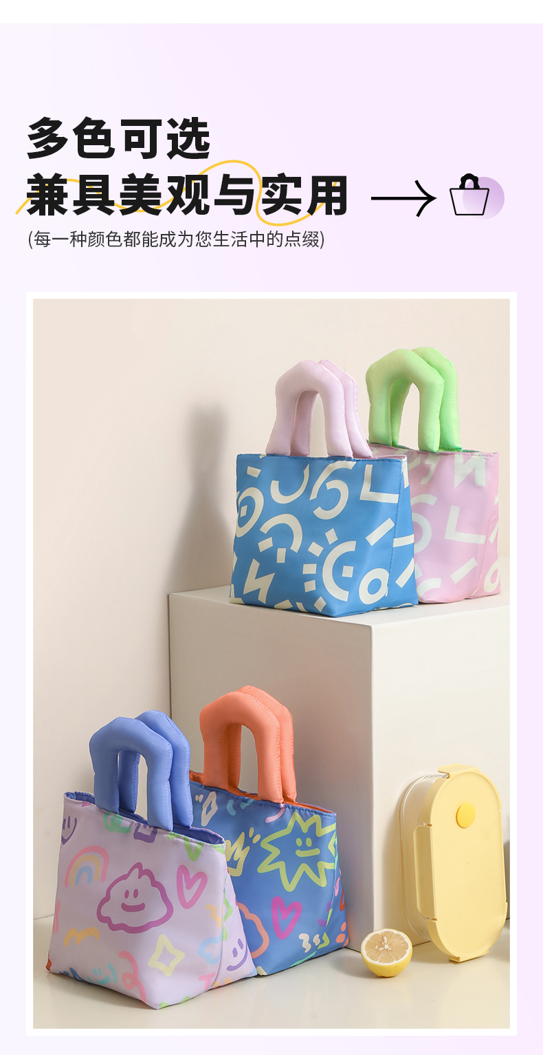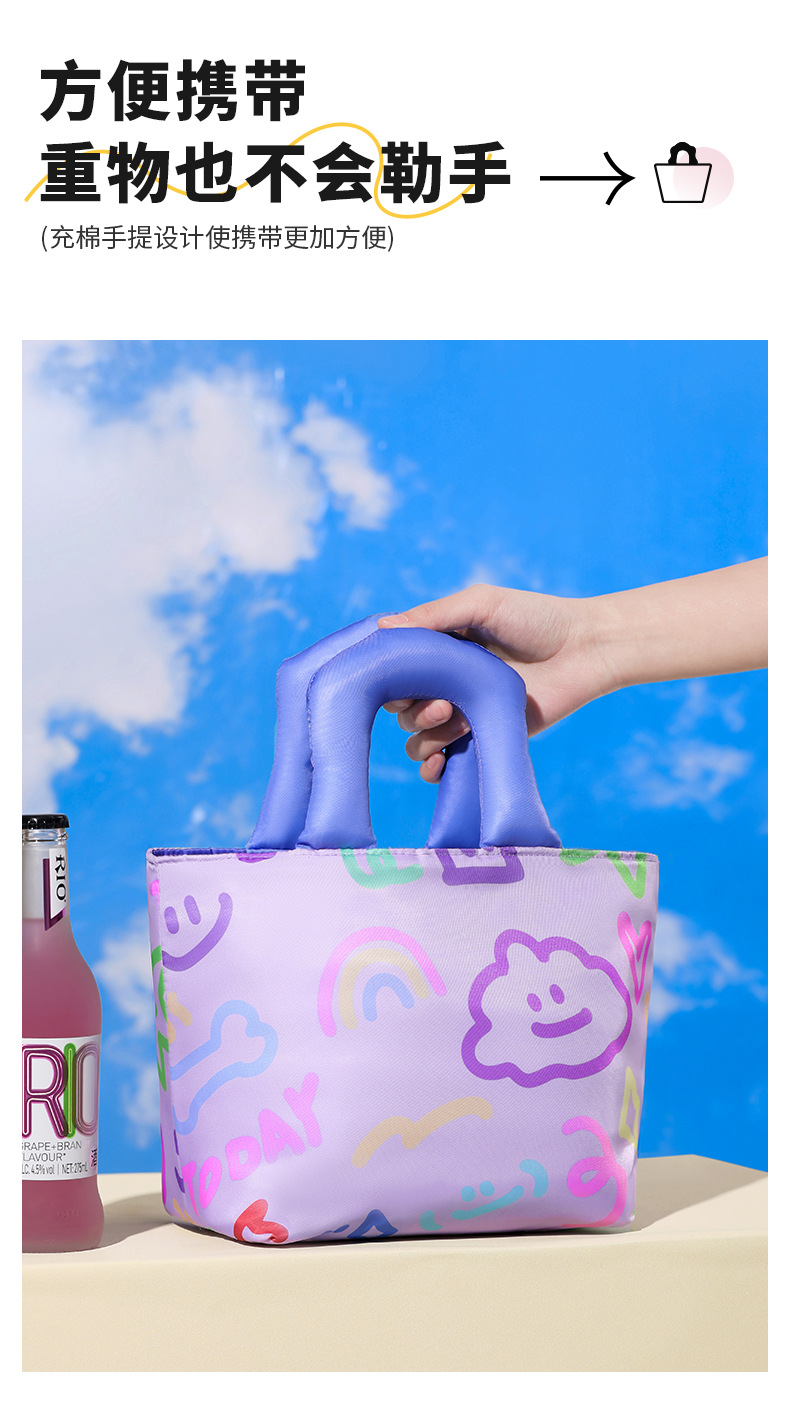 2025 새로운 손으로 그린 낙서 식사 가방 두꺼운 휴대용 도시락 가방 사무실 학생을위한 방수 및 내유성 도시락 가방