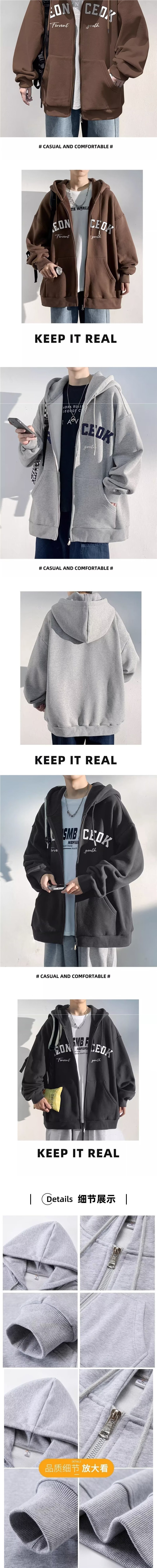 미국 패션 브랜드 재킷 남자 봄과 가을 2024 기모 스포츠 후드 카디건 스웨터 남성복 재킷
