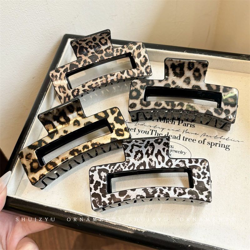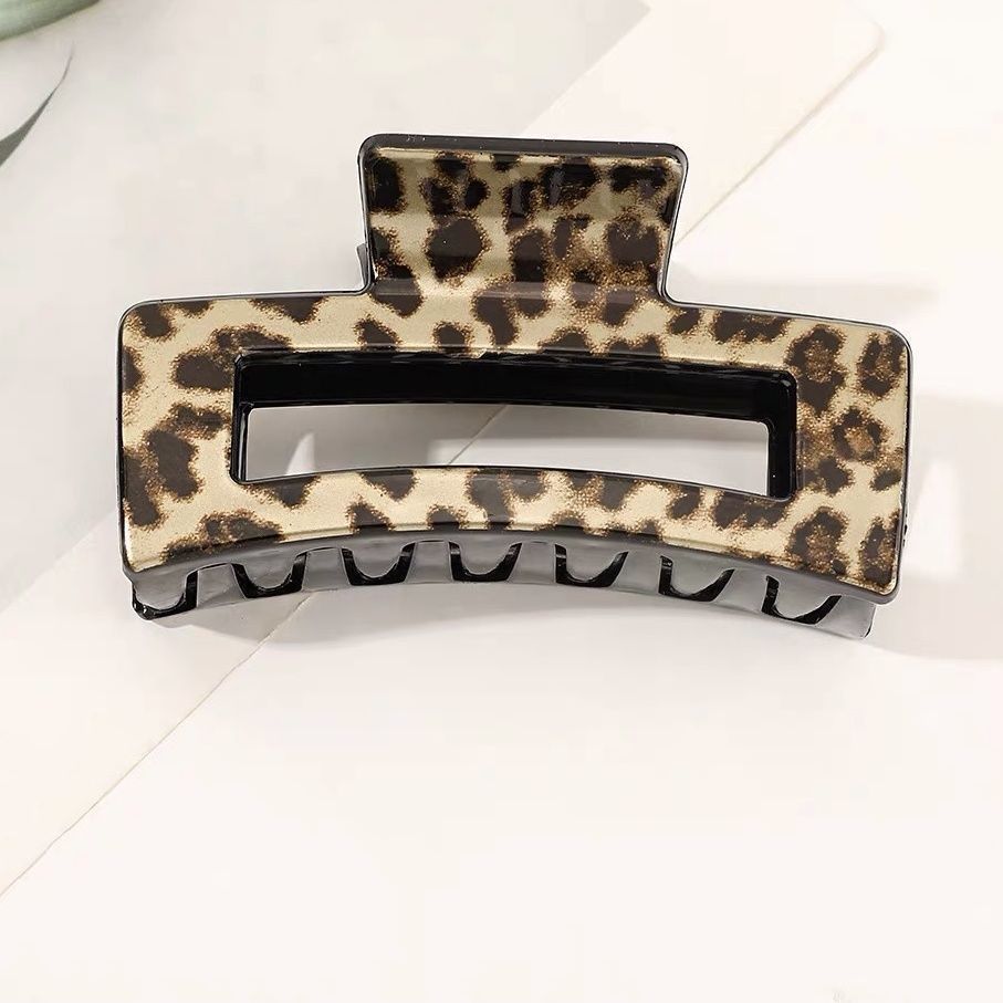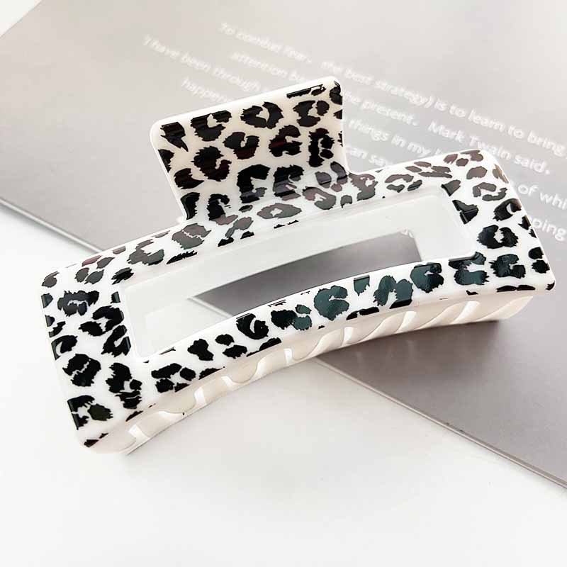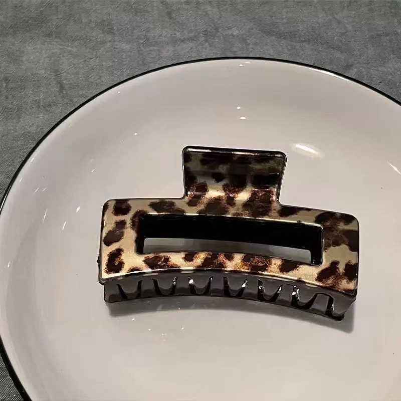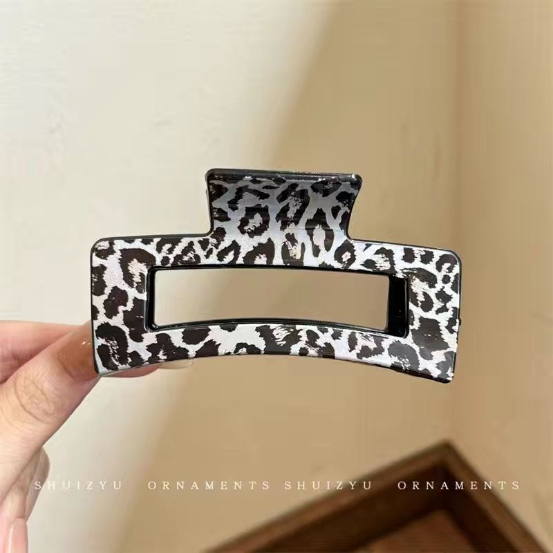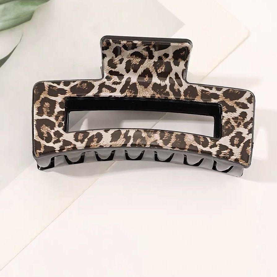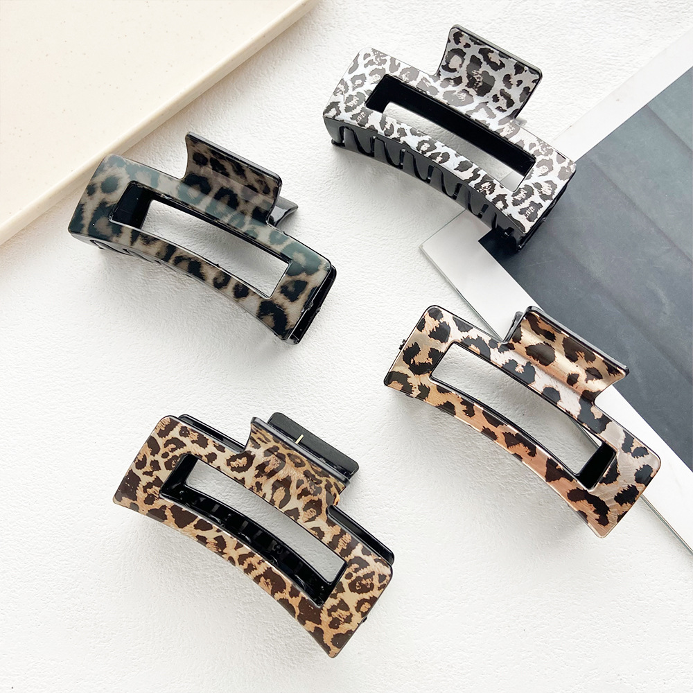 국경 인쇄 플라스틱 머리핀 표범 사각형 중공 그립 클립 여름 높은 감각 큰 상어 클립 헤어 액세서리 도매스토어 가기