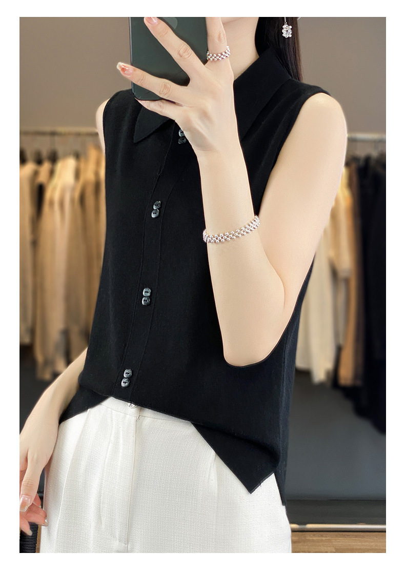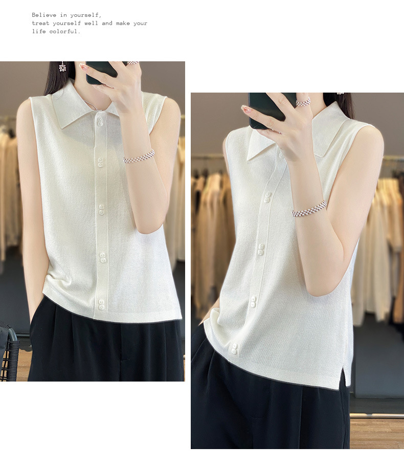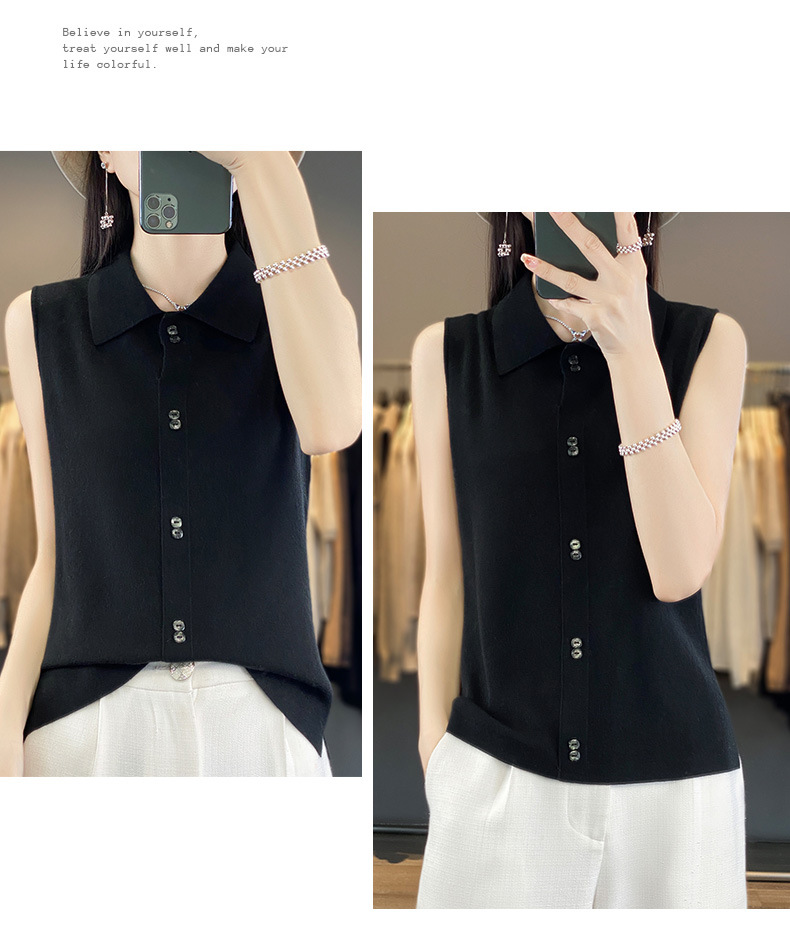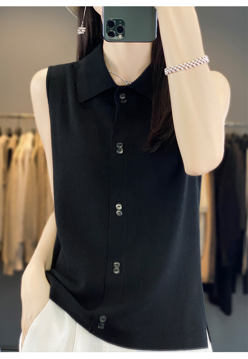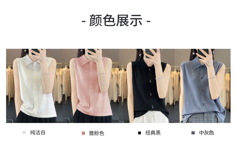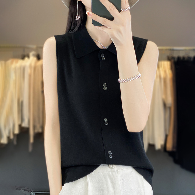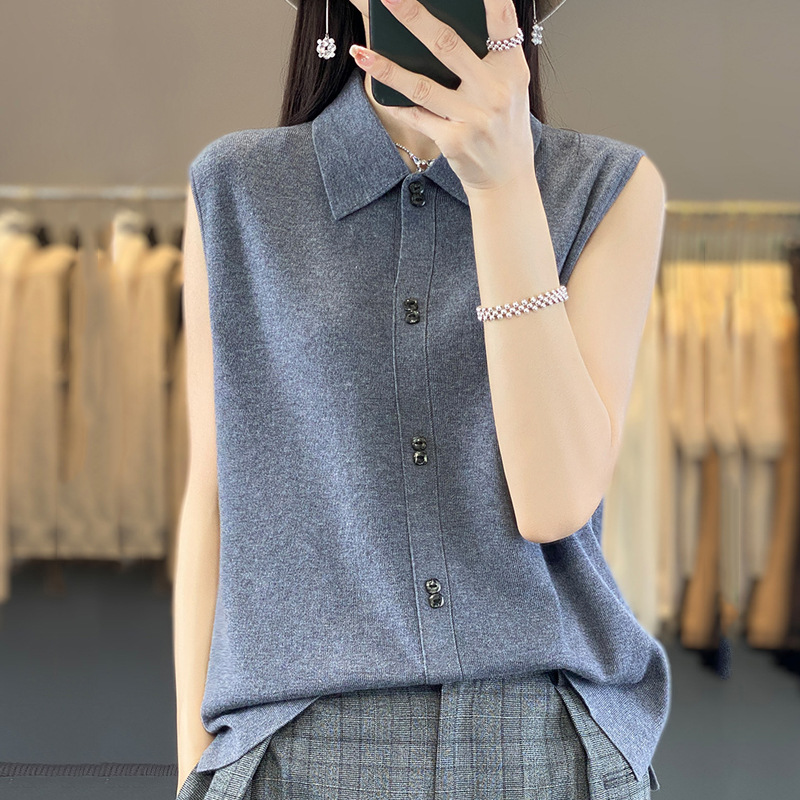 쌓인 조끼 여성용 POLO 칼라 민소매 카디건 탑 슬림베이스 셔츠 얇은 스웨터 가을 새 도착