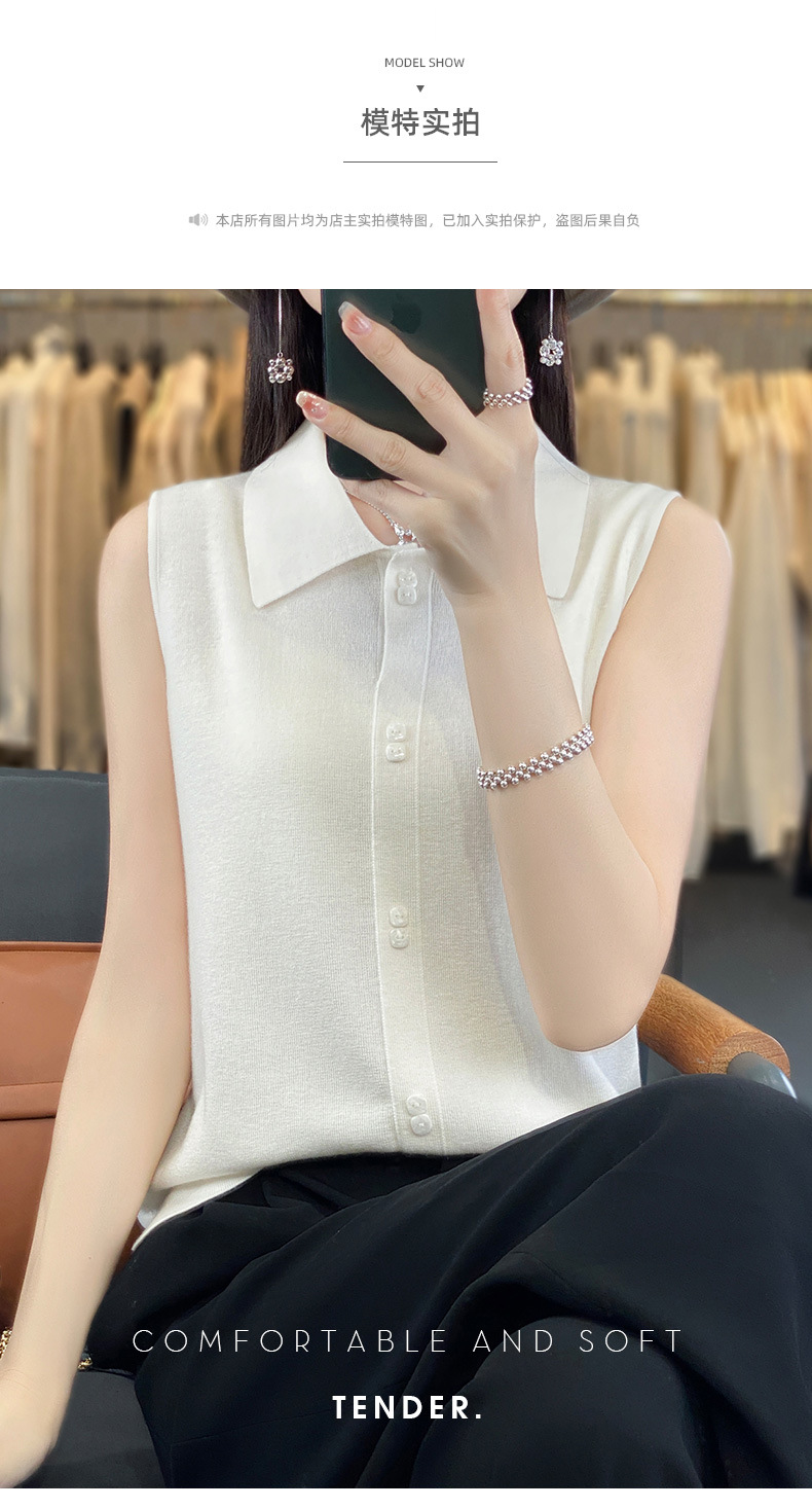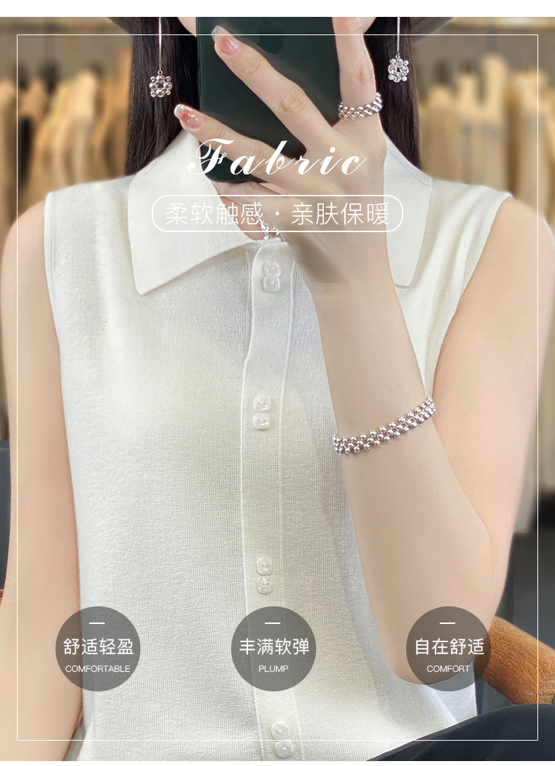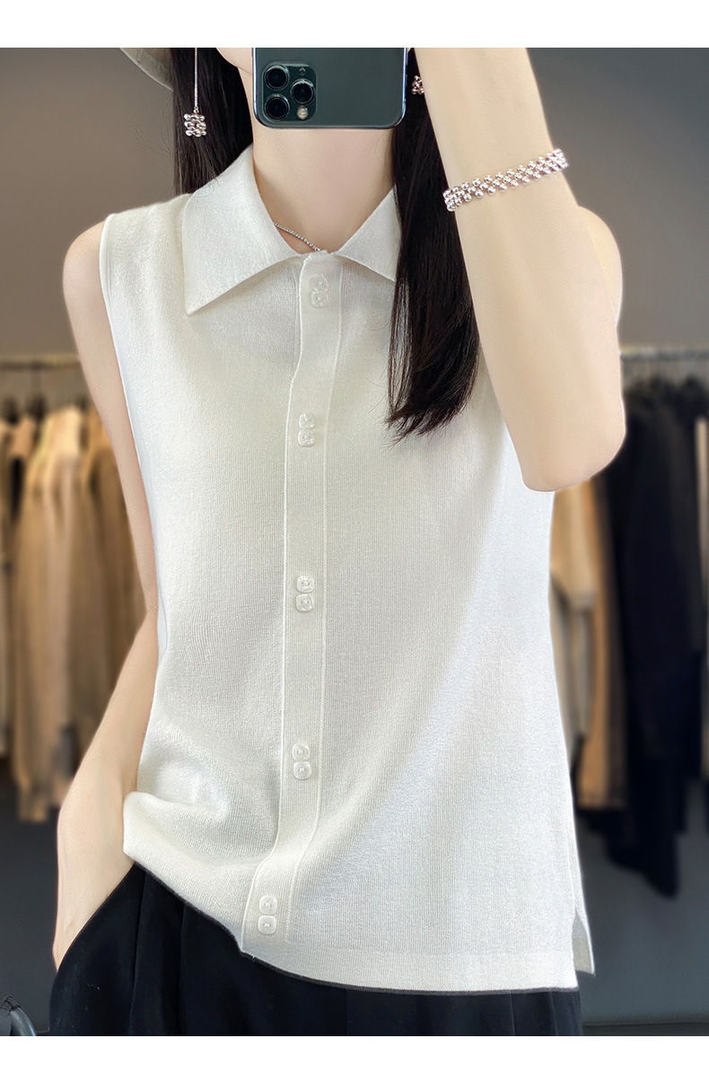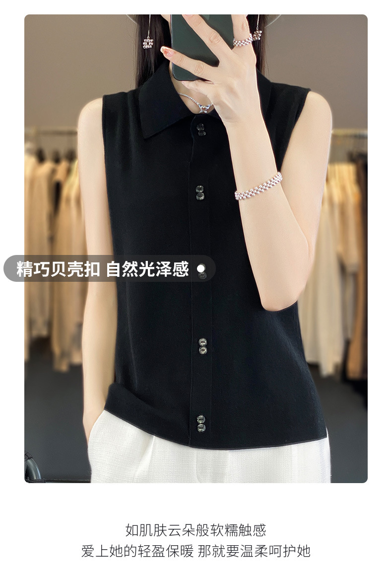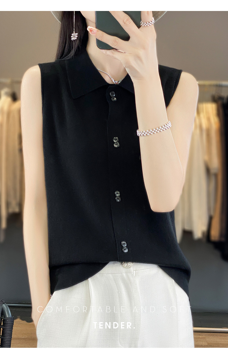 쌓인 조끼 여성용 POLO 칼라 민소매 카디건 탑 슬림베이스 셔츠 얇은 스웨터 가을 새 도착스토어 가기