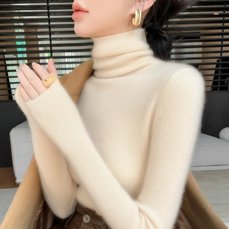 포장 된 칼라 스웨터 여성의 가을과 겨울 하이 엔드 센스 2024 새로운 슬림 핏 슬리밍 하이 칼라베이스 셔츠 니트 탑스토어 가기