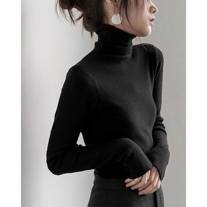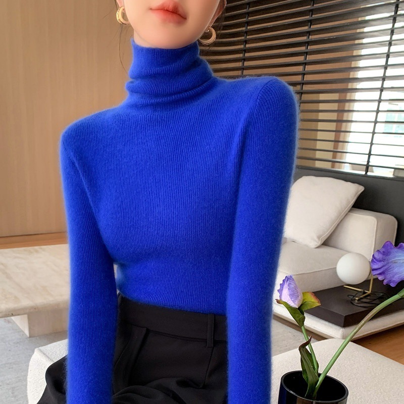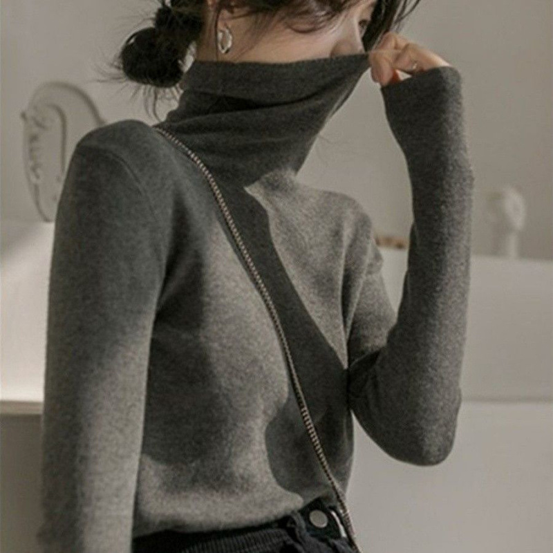 포장 된 칼라 스웨터 여성의 가을과 겨울 하이 엔드 센스 2024 새로운 슬림 핏 슬리밍 하이 칼라베이스 셔츠 니트 탑