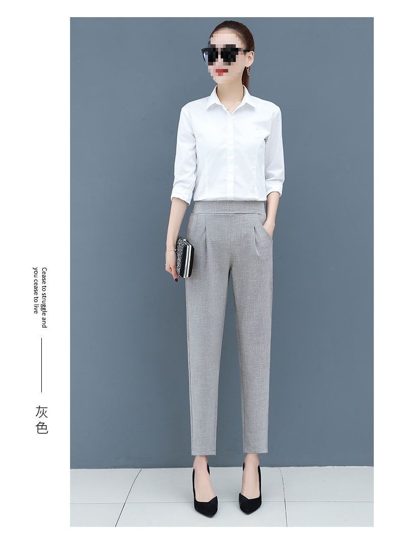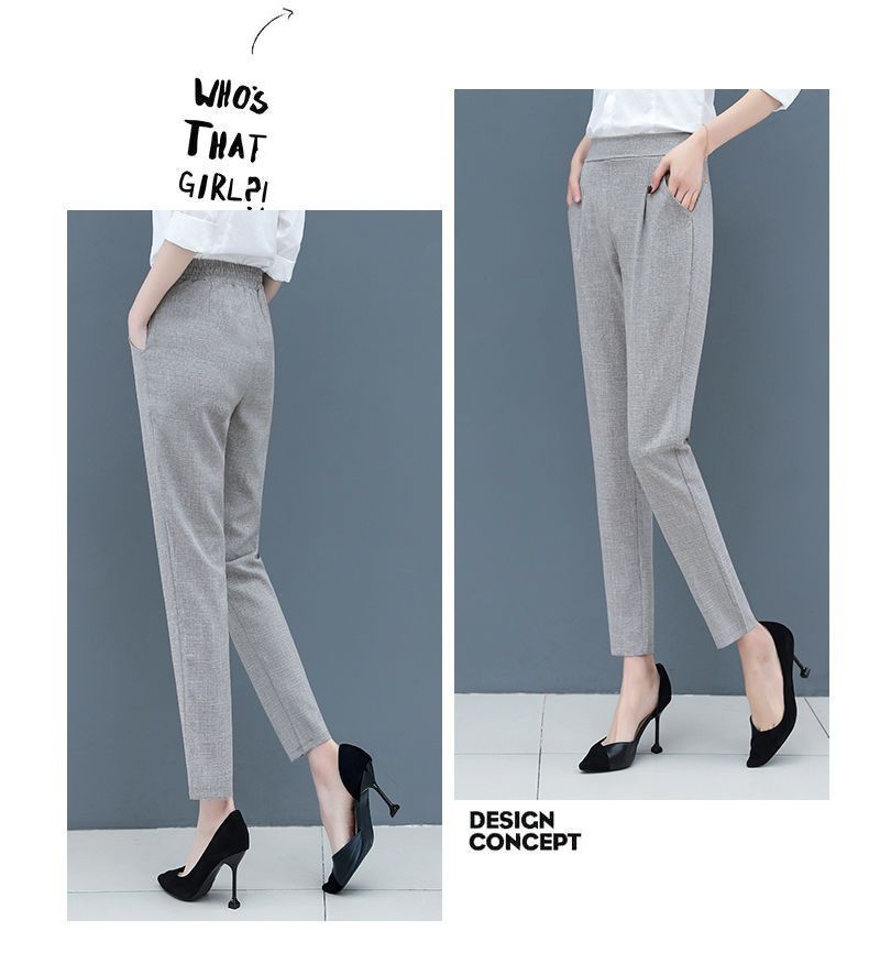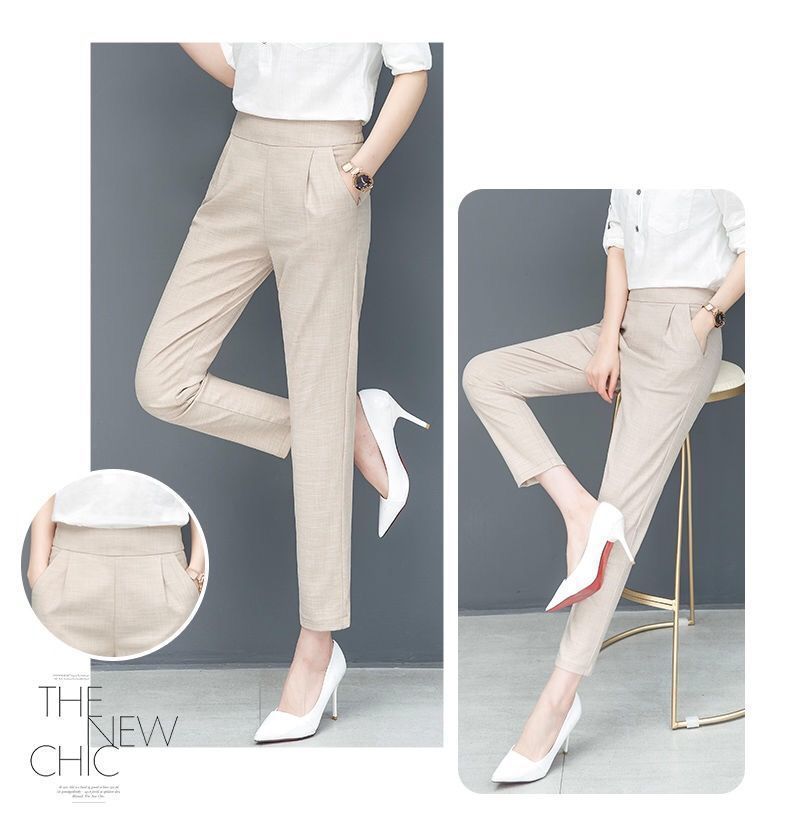 Harlan 바지 여성 높은 허리 슬리밍 봄과 여름 새로운 도착 면화 린넨 스트레이트 다리 바지 캐주얼 루즈 바지 여성스토어 가기