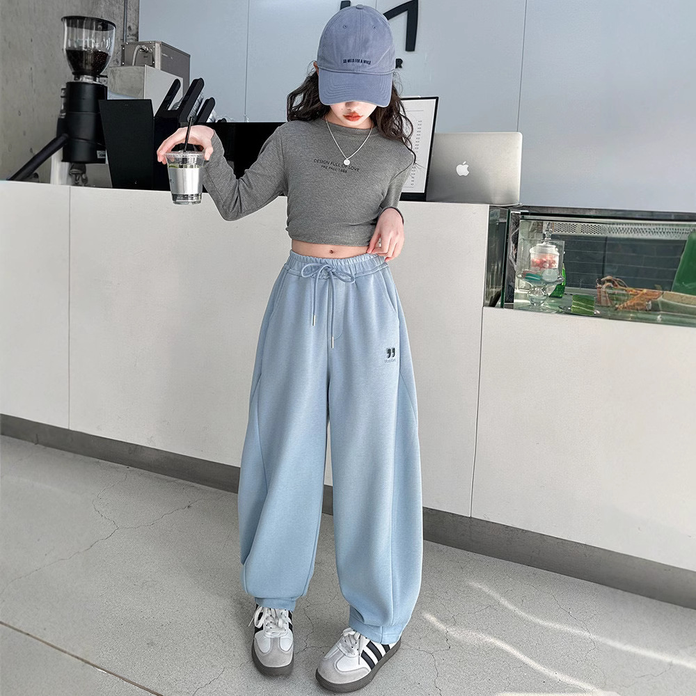 소녀 바지 봄과 가을 2025 새로운 서양식 어린이 캐주얼 바지 봄 원피스 소녀의 봄 느슨한 넓은 다리 바지