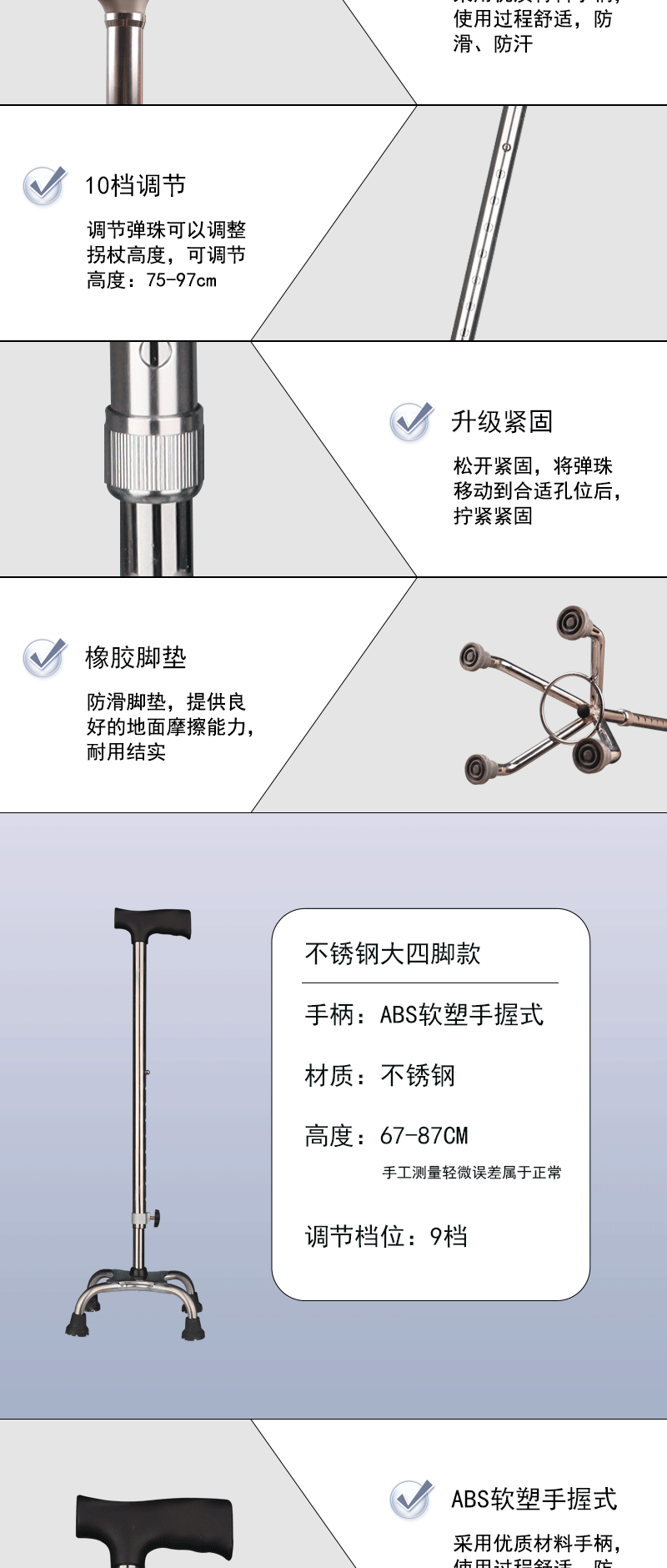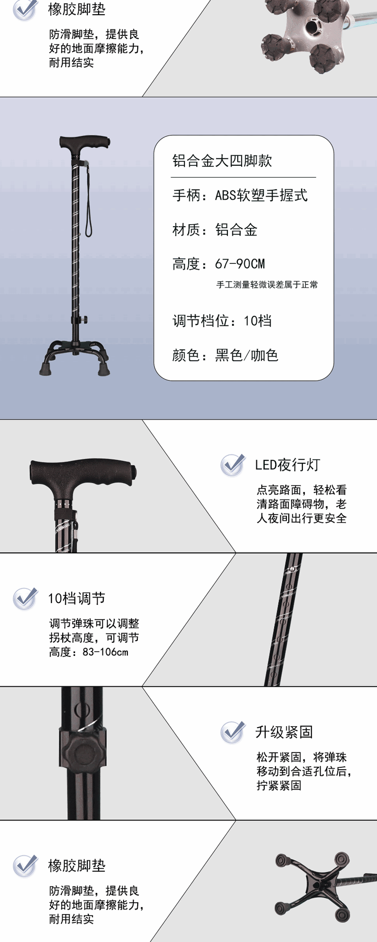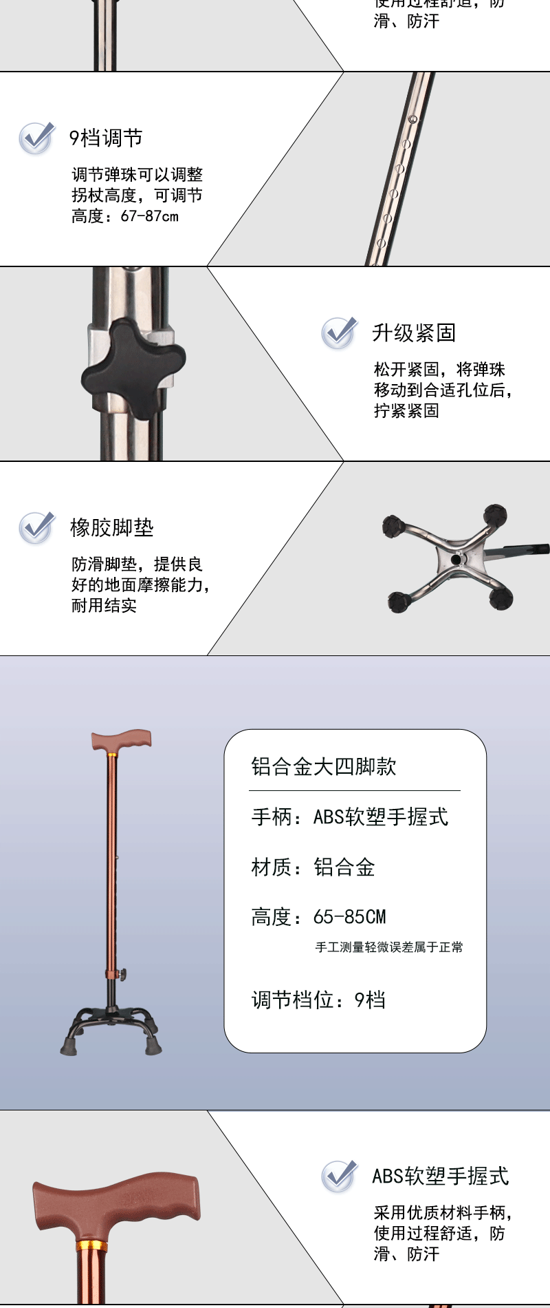 노인을위한 목발 노인을위한 네 다리 워킹 스틱 알루미늄 합금 워킹 스틱 스테인레스 스틸 워킹 스틱 4 코너 미끄럼 방지 접이식