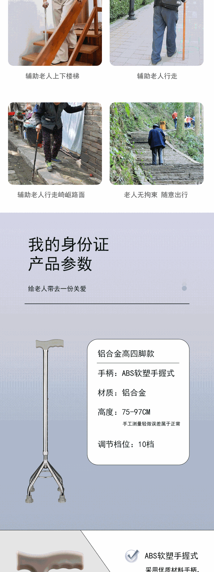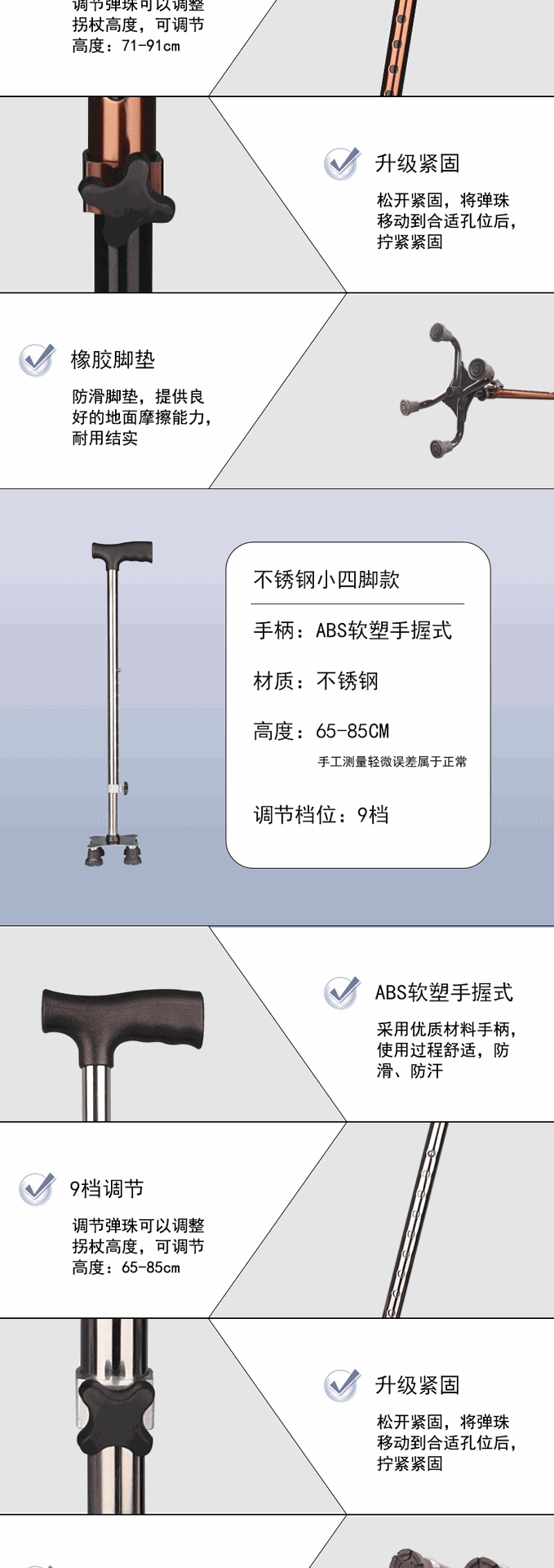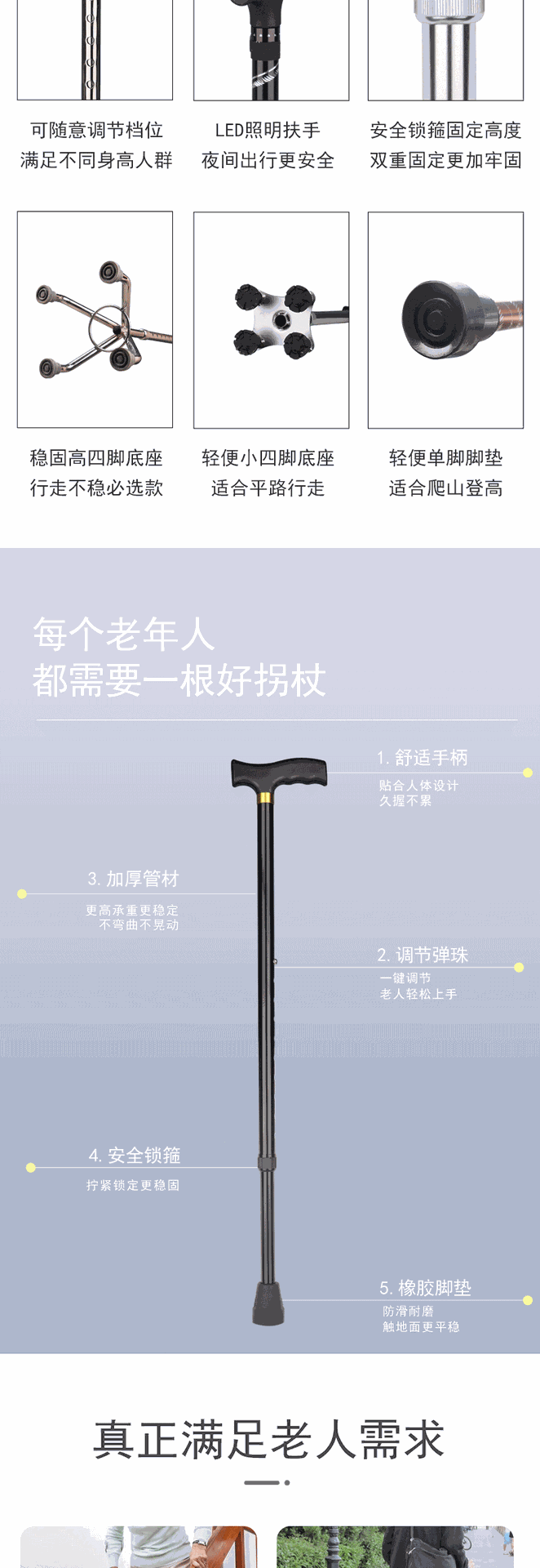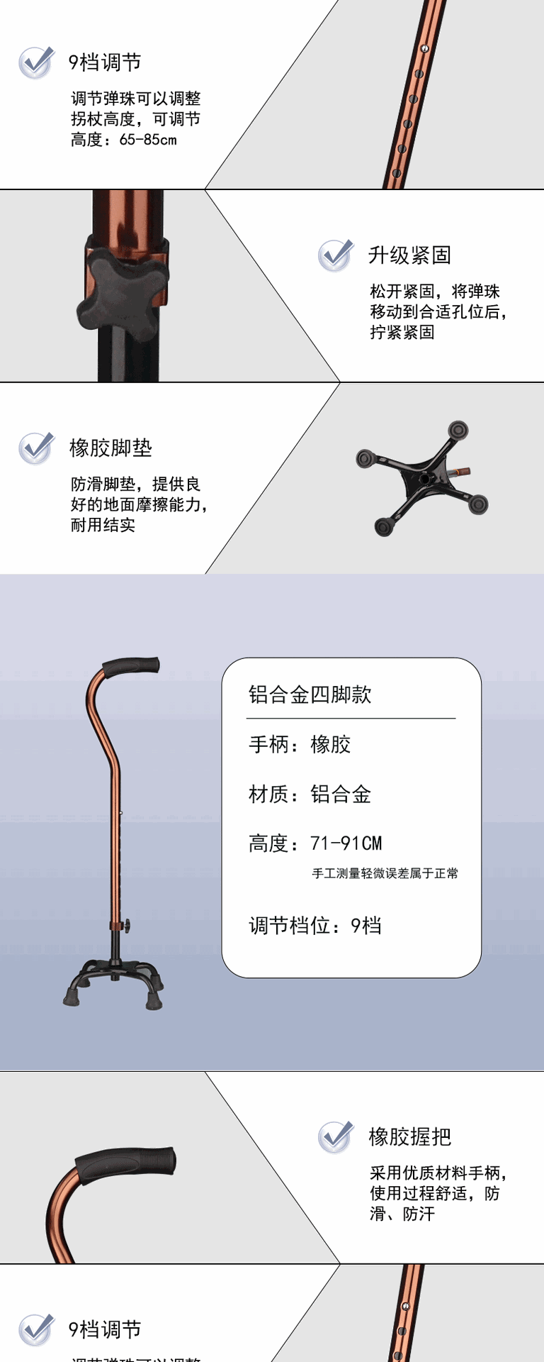 노인을위한 목발 노인을위한 네 다리 워킹 스틱 알루미늄 합금 워킹 스틱 스테인레스 스틸 워킹 스틱 4 코너 미끄럼 방지 접이식