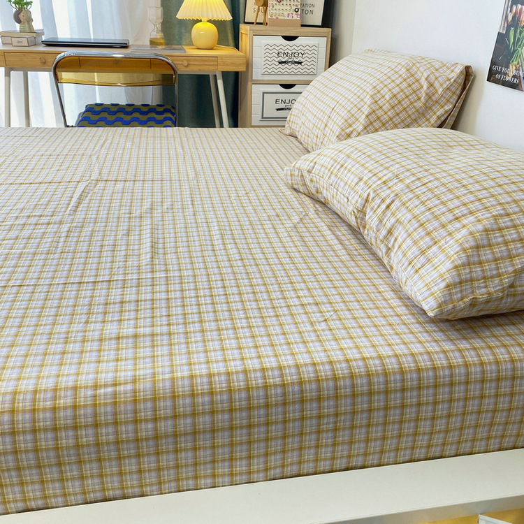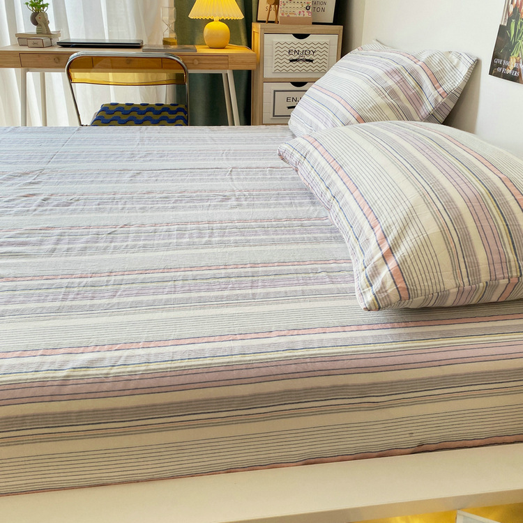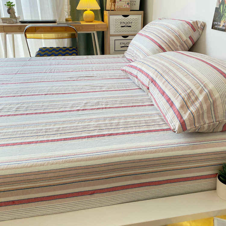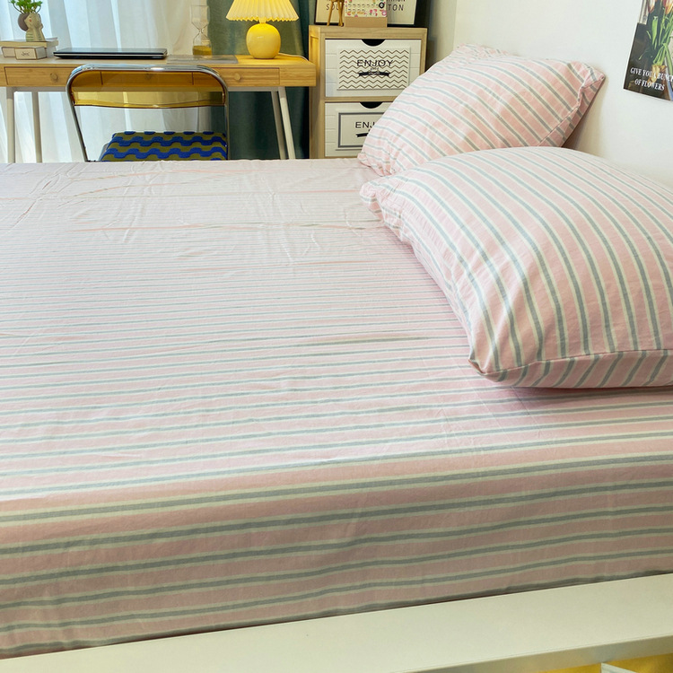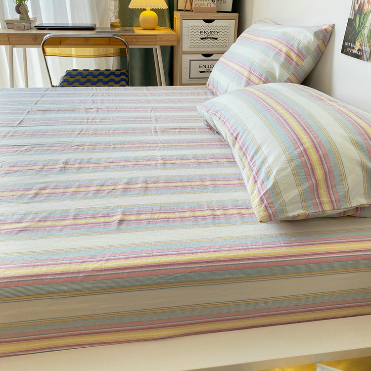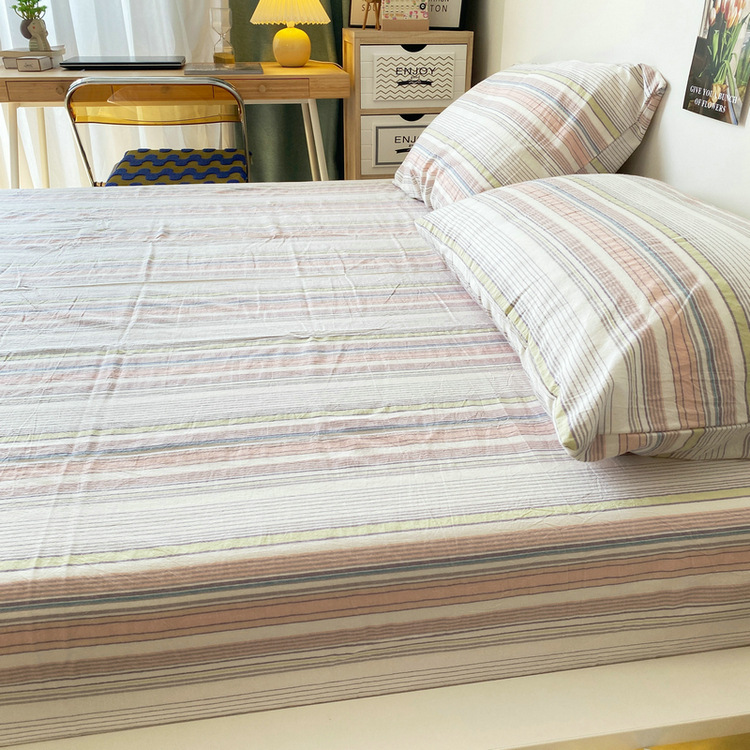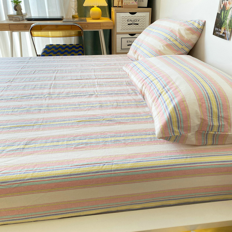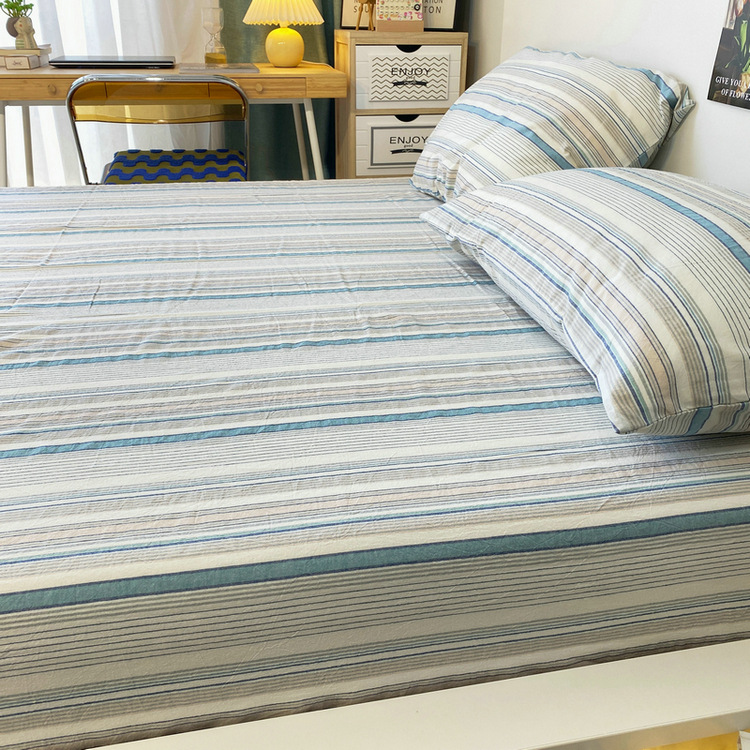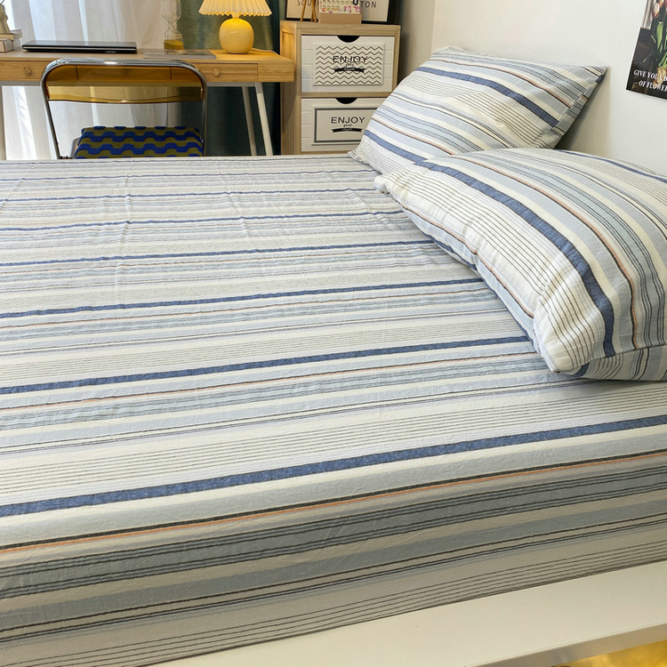 # 원사 염색 스트라이프 침대 시트 싱글 피스 코튼 100 학생 기숙사 싱글 침대 3 피스 세트 여름 퀼트 베갯입니다